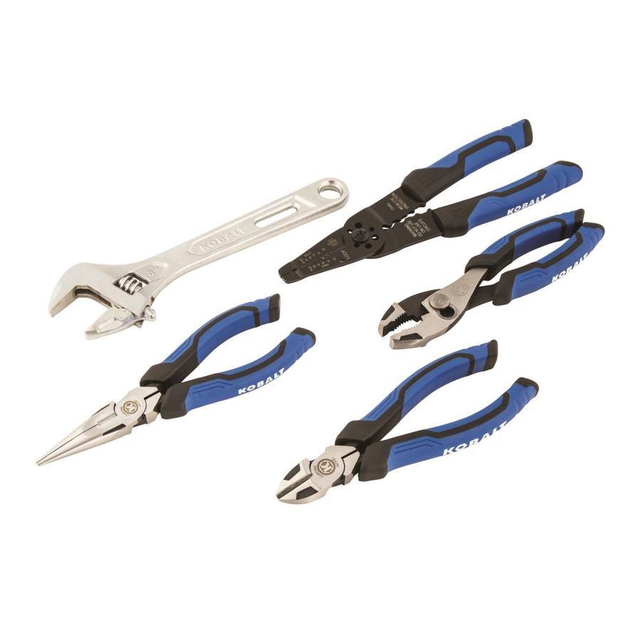 Pliers include 8-in long nose, 6-in slip joint and 6-in diagonal