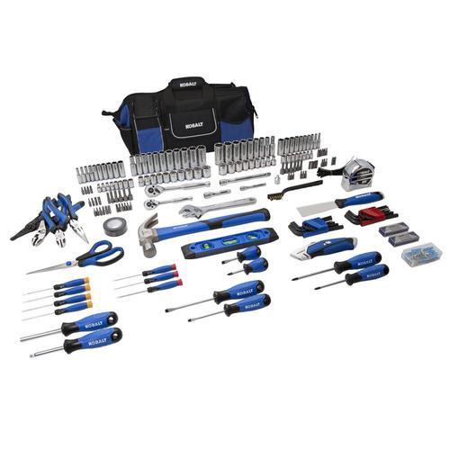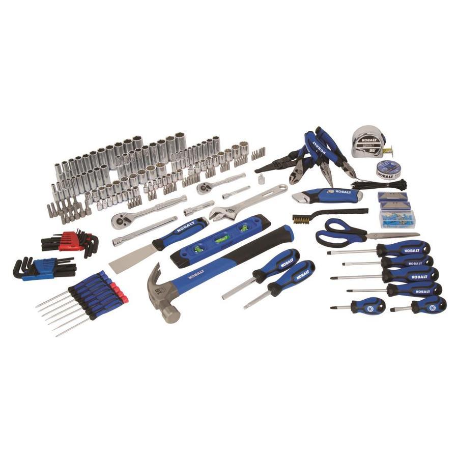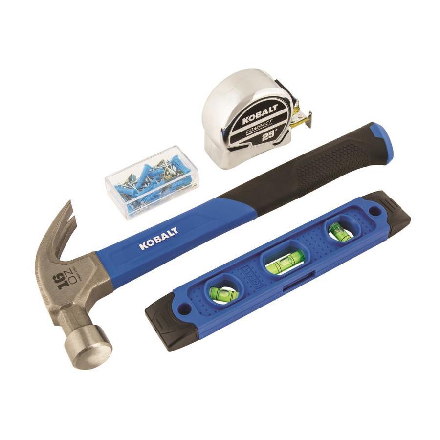 Other household tools included are a picture hanging kit, mini wire brush, putty knife, cable ties, scissors wire stripper, hammer, tape measure, level and utility knife with replacement blades