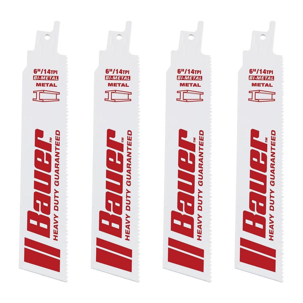 These bi-metal reciprocating blades from Bauer™ have ultra-hard cutting edges for making quick cuts in metal. The 14 TPI teeth are optimized to handle a variety of metals while the oversized body reduces vibration and blade chatter.