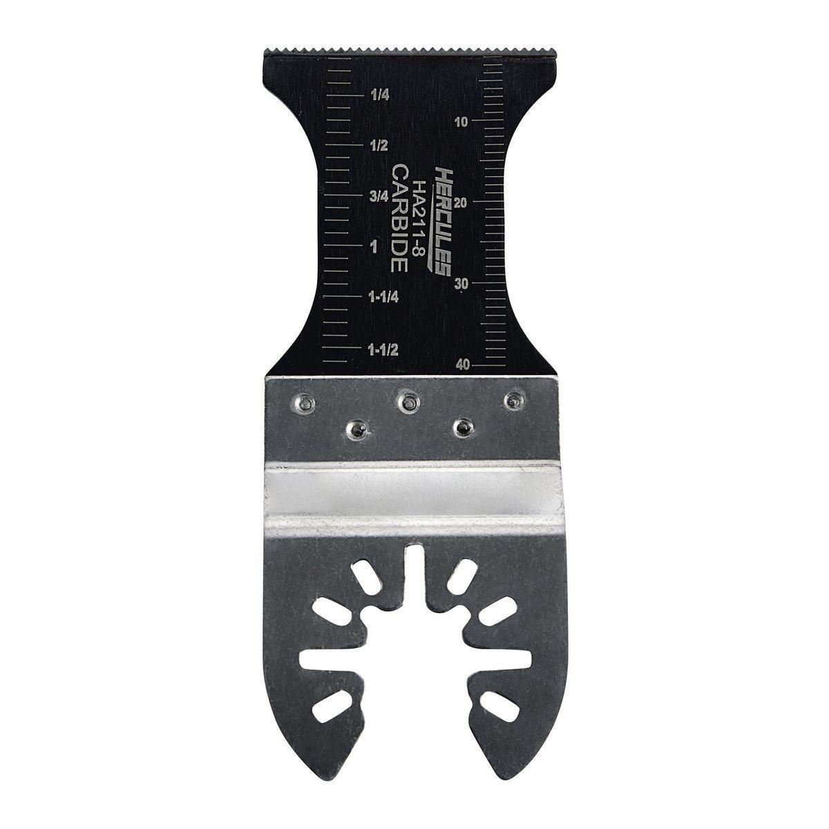 The Hercules® 1-3/8 in. Carbide Tooth Reduced Neck Cutting Blade is designed with Anti-Jam technology for more cuts with less jamming. The offset blade with extra-strong welds is equally suited to plunge cutting or making super-clean flush cuts. The precision sharpened carbide teeth last longer when cutting metal. The blade is laser-etched with depth markings for making precise cuts.