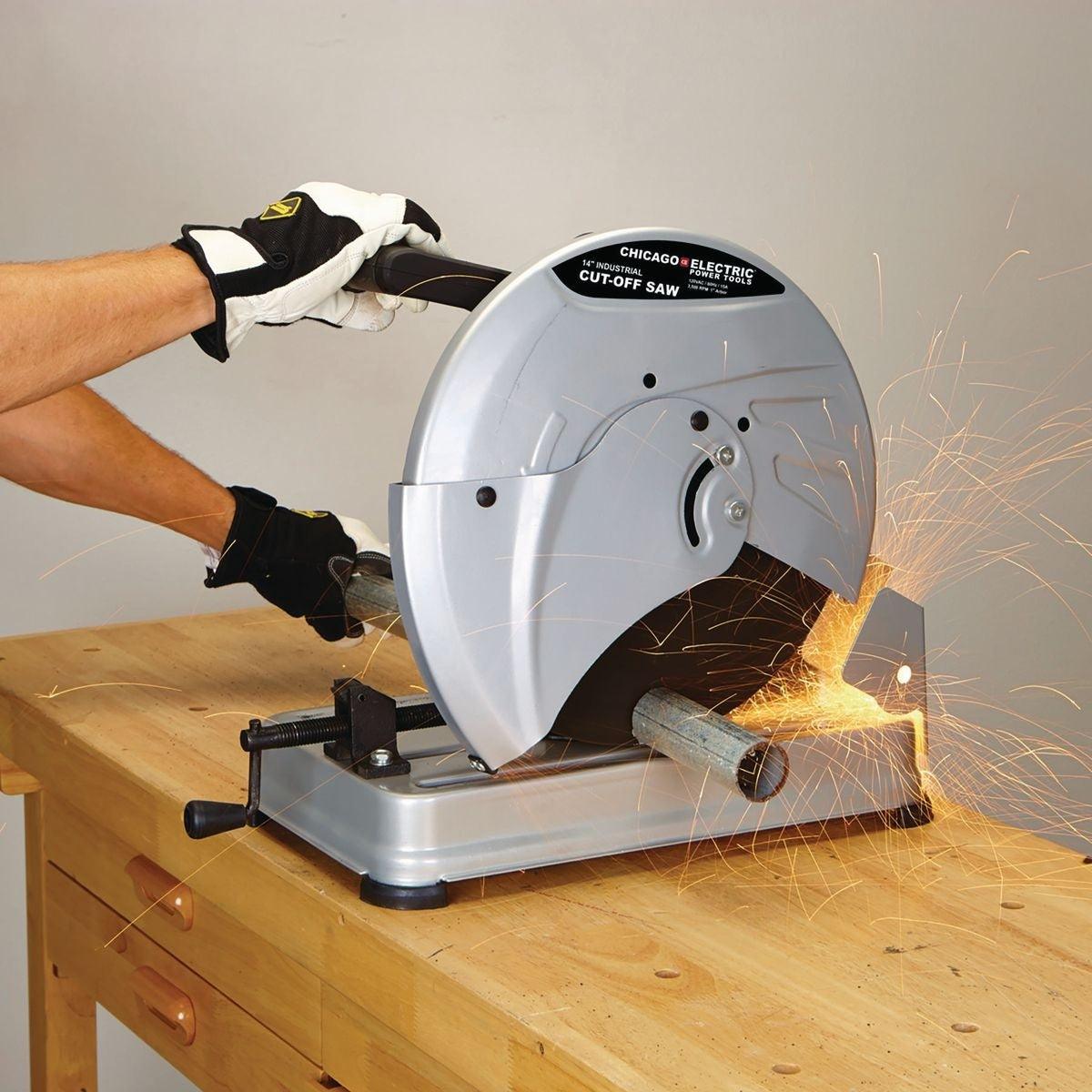 This heavy-duty 14 in. cut-off saw is powered by a high-performance 15 amp, 3.5 HP motor to slice through metal with ease. The wide D-handle grip has a full-width trigger for comfort and control. A quick-release vise lets you position your workpiece quickly. This chop saw has fully shielded bearings to ensure smooth operation over a long service life.