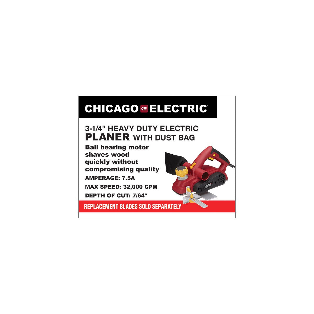 3-1/4 in. 7.5 Amp Heavy Duty Electric Planer With Dust Bag