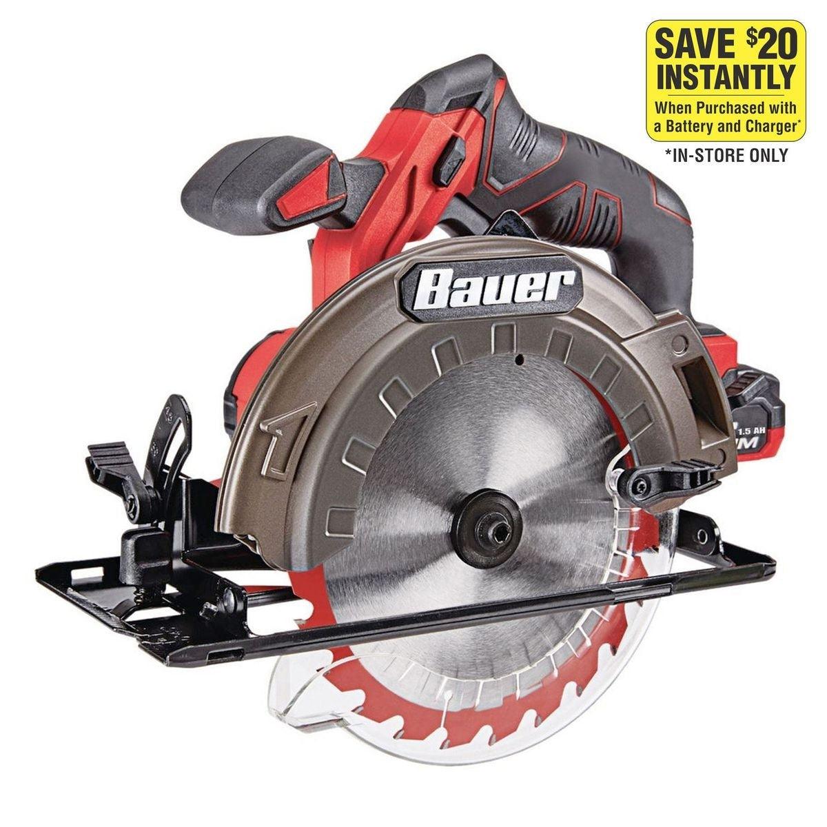 This powerful Bauer™ cordless circular saw provides raw cutting power with a dual grip handle design for control and accuracy. High power and increased cut capacity make this an ideal jobsite saw. Buy with confidence with an included no-questions-asked risk-free trial, extendable for up to 2 years.