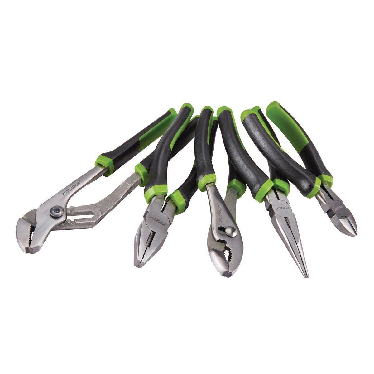 The 5 Pc Pliers Set includes pliers for all types of jobs. This set of pliers is constructed of heavy duty forged and hardened steel with a polished finish. Comfort grips for a non-slip hold.