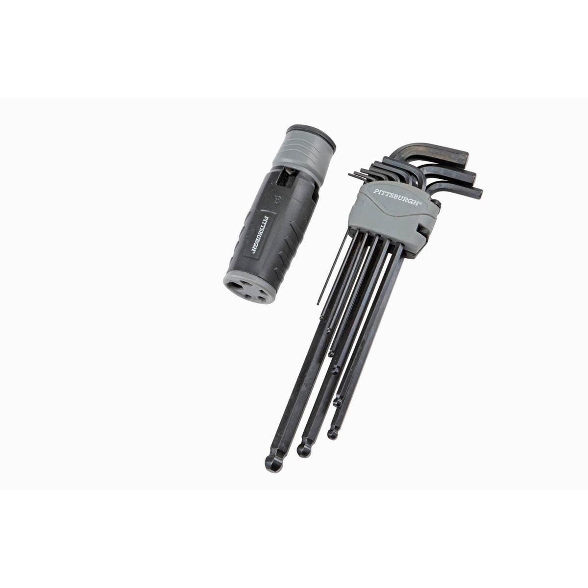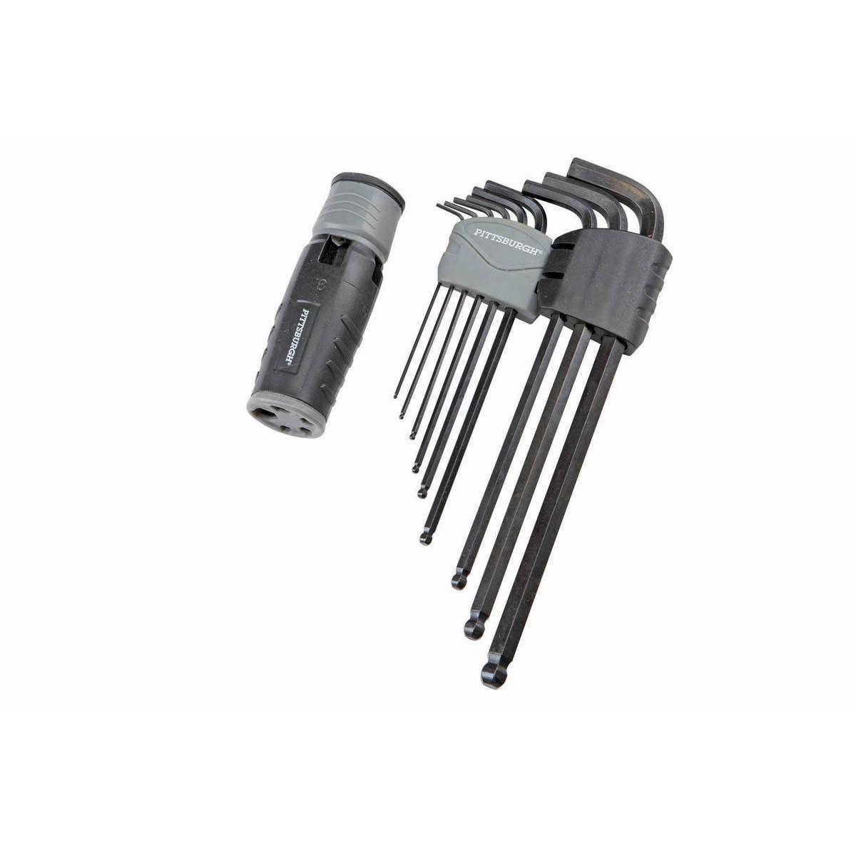 This hex key system delivers the same high torque as standard wrenches yet also lets you get hard-to-reach fasteners. The handle system also works like a T-wrench set for even more versatility. The hex key wrench system comes with a convenient key caddy for easy transport and storage.