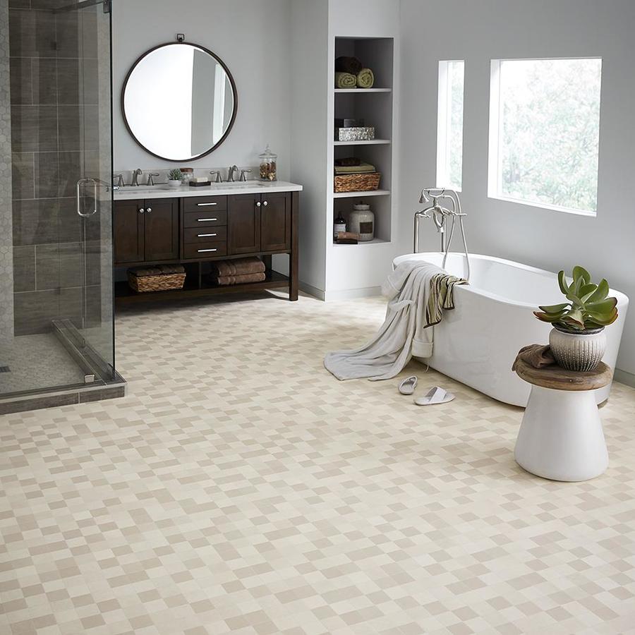 The randomized geometric pattern in this stone-look floor creates a classy, modern look QuickClean wear layer provides extra durability ensuring long lasting beauty SuperGuard stain shield for enhanced protection against, stains, scuffs and scratches Waterproof to the core, perfect for moisture prone areas Acoustically friendly minimizes sound impact and transmission 6’ wide roll offering potentially seamless installation Moisture and mildew resistant Lifetime limited residential/5yr limited light commercial Soft and comfortable underfoot