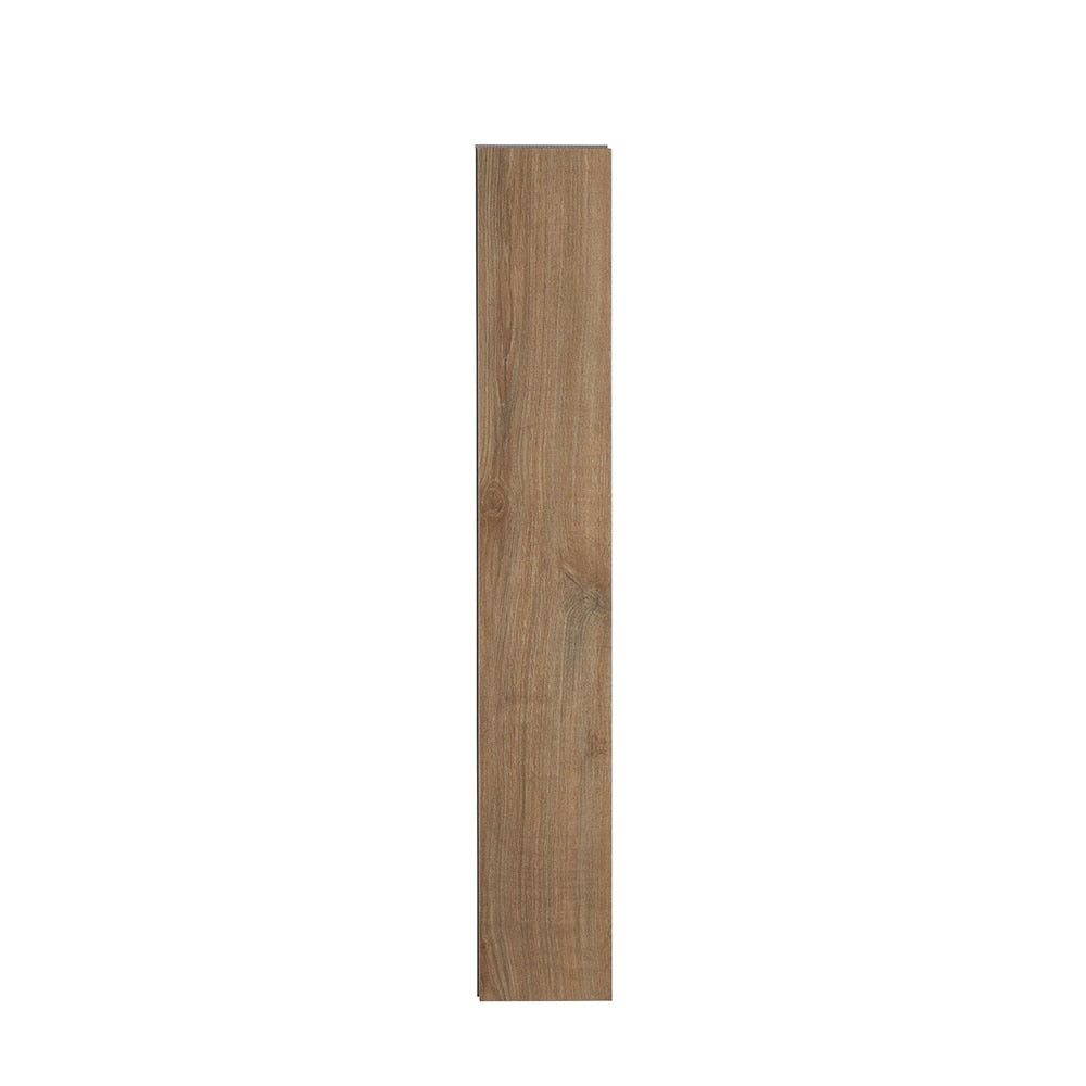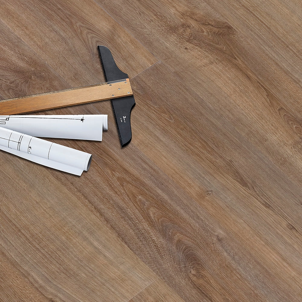 Enhanced Wood Appearance: Features a midtone brown oak look with beige and gray highlights and an embossed wirebrushed surface.