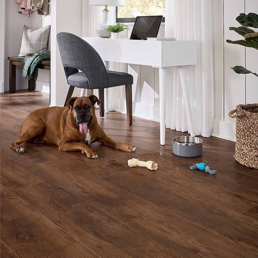 Revitalize your space with Pergo DuraCraft Marsala Oak Brown Luxury Vinyl Plank Flooring, offering a stunning red-brown hardwood look with waterproof and durable features. This premium flooring comes equipped with WetProtect4 technology and antimicrobial properties for the ultimate in moisture and bacterial resistance, making it a perfect choice for high-traffic and high-moisture areas.