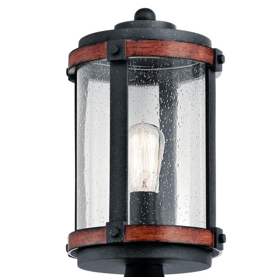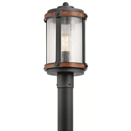 Distressed black and wood tone finish post light is from the Barrington collection
