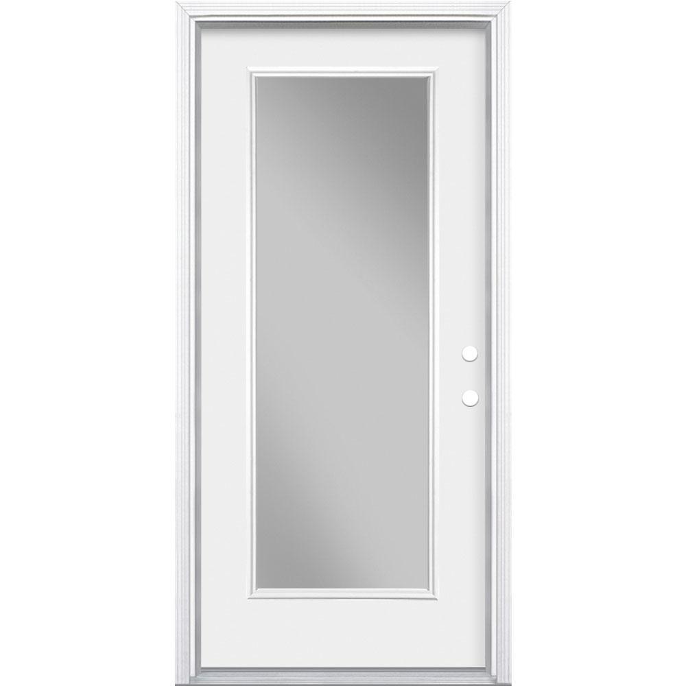 By combining the strength of steel and the elegance of high-definition decorative panels, you will enjoy the ultimate in security and beauty with the Masonite Premium Full Lite Primed Steel Entry Door with Brickmold. High-definition panels closely replicate the appearance of a high-end wood door with excellent shadow lines for added architectural interest. Expertly engineered, the wood-edge design features an energy saving door core adding strength and insulation. Ready to customize and paint, the baked-on primer helps create a durable, smooth finish.