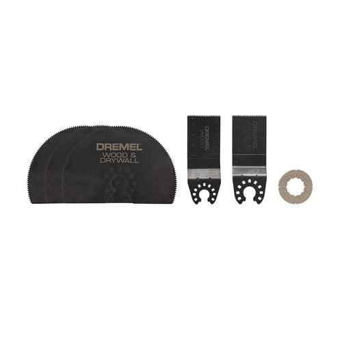 Includes: MM480 wood flush-cut blade, MM482 wood and metal flush-cut blade, 3 MM450 wood and drywall blades, and a plastic storage case