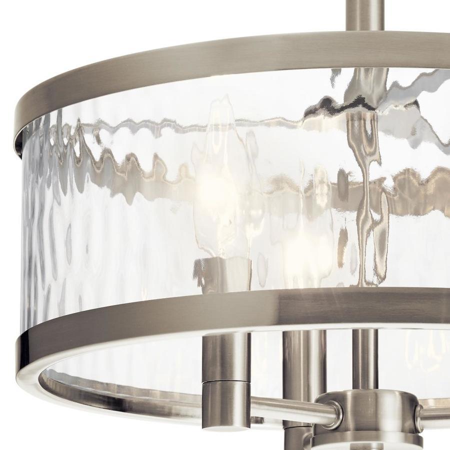 Brushed nickel finish semi-flush mount light from the Marita collection creates an upscale look