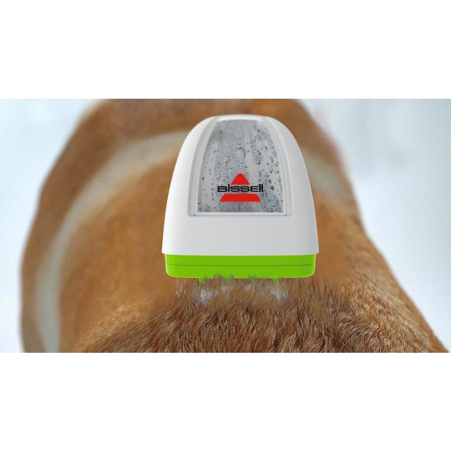 Portable bathing tool connects to BISSELL portable carpet cleaners allowing you to bathe your pet practically anywhere and anytime with virtually no mess