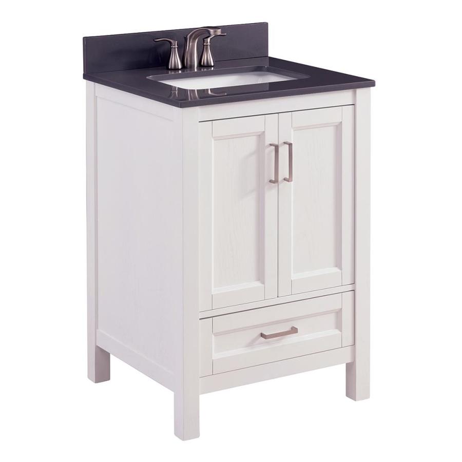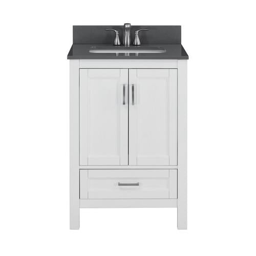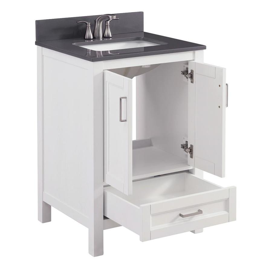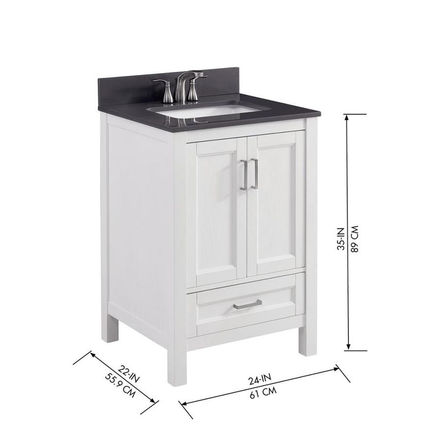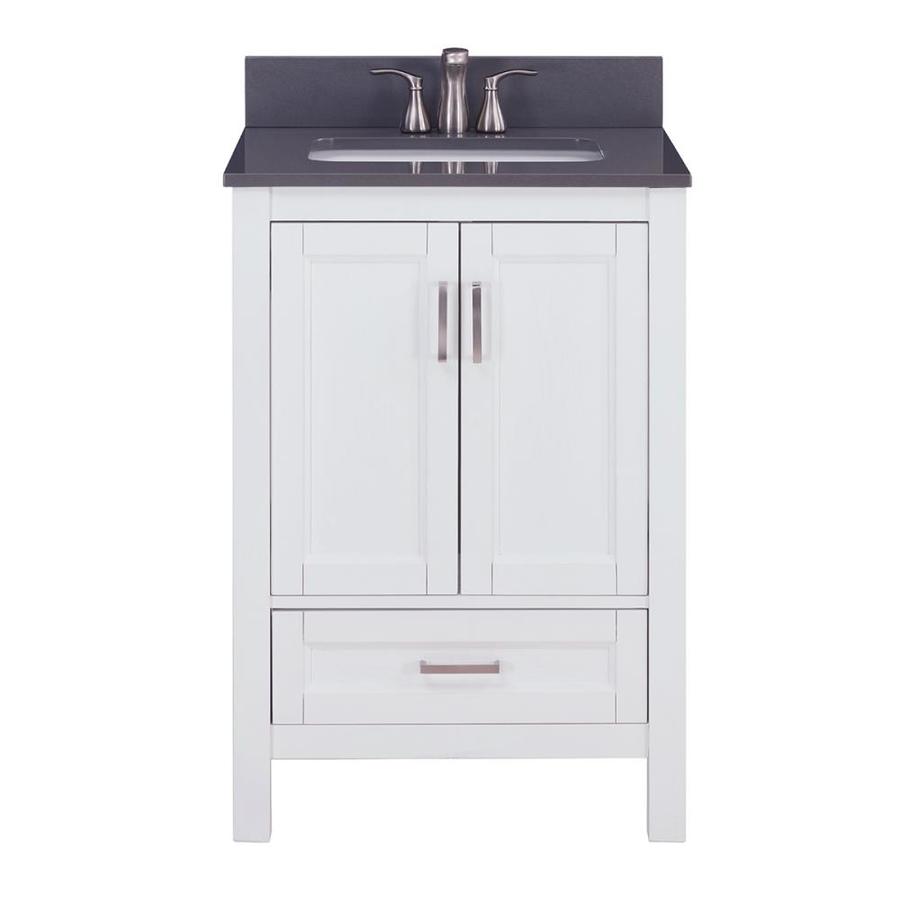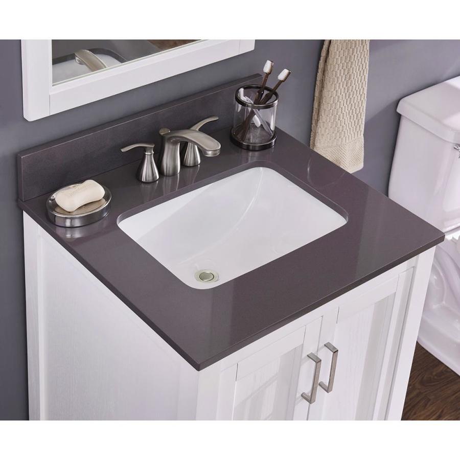 Dark gray engineered stone top with 4-In backsplash and rectangular undermount ceramic sink with overflow (cUPC Certified)