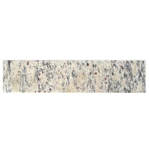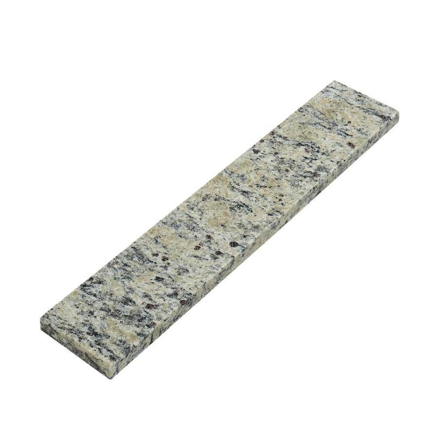 High-end natural granite decorative side splash will protect walls and vanity from water damage Universal left or right fit Complements 22-in deep Santa Cecilia granite vanity tops Easy to install and clean