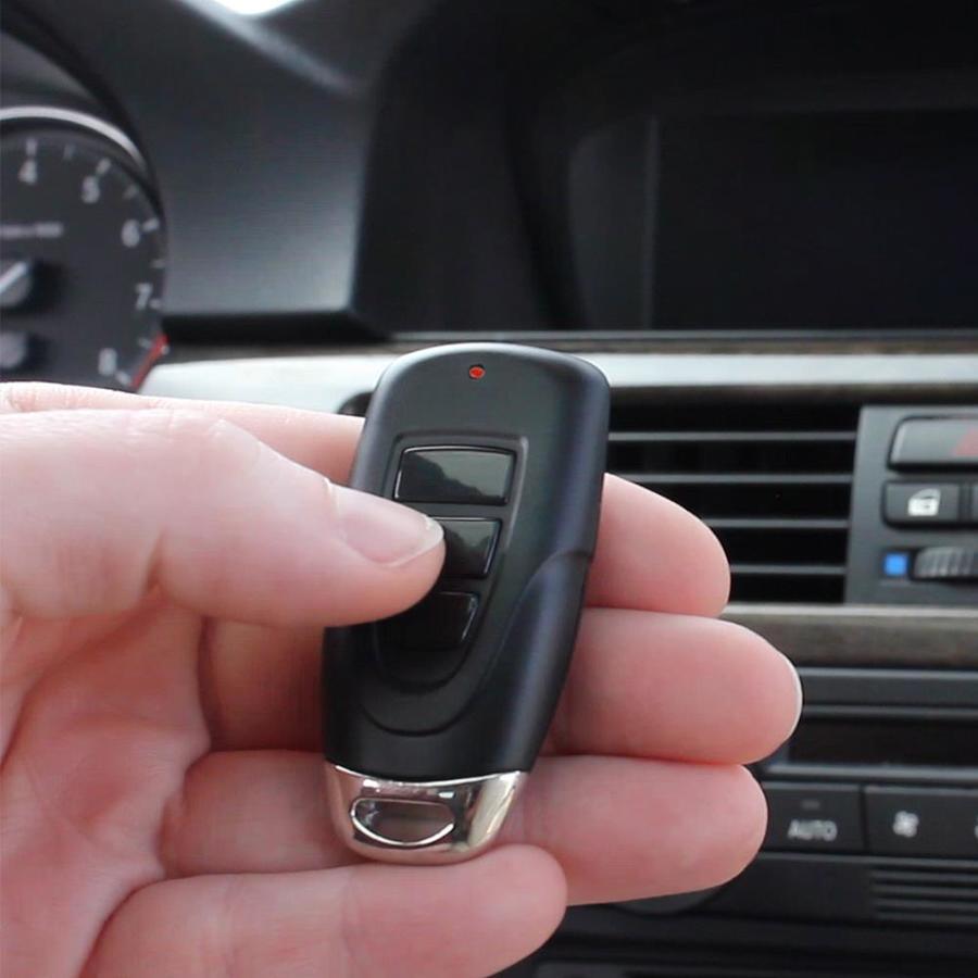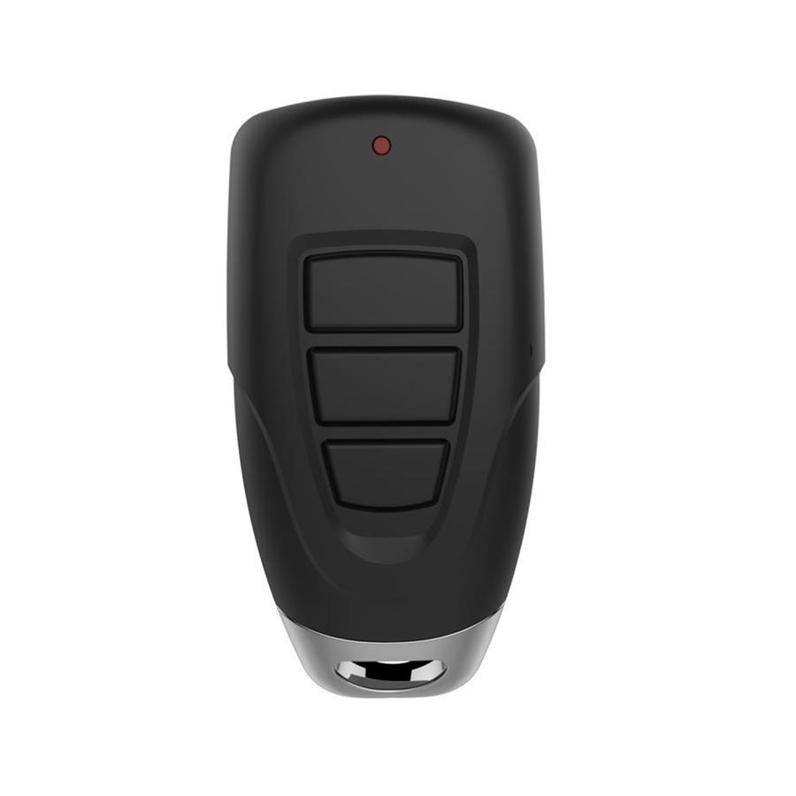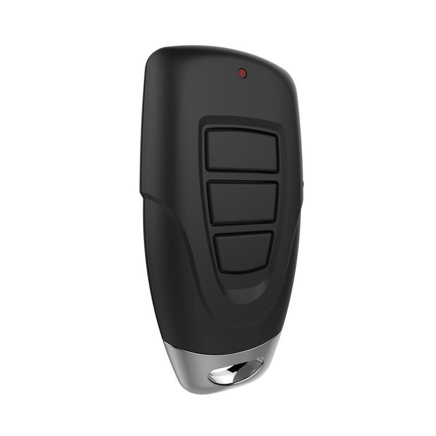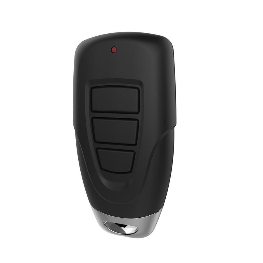 3-Button garage door remote Optional pass code protection Multiple door control Key chain loop
