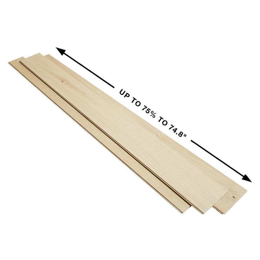 Upscale up to 74.8 In. longer and wider boards which add value and elegance to any room in your home Unique Sawmark texture gives a true Reclaimed natural look and feel On trend colors for a perfect match to all decor and interiors in your home 24.93 sq. ft. per case and 41.45 lbs per carton Wood species: Hickory/Construction: 7 ply cross grain engineered hardwood flooring Prefinished, ultra low gloss urethane finish with aluminum oxide, wire brushed with unique circular and straight saw marks Planks have hand rolled edges and ends Janka wood hardness rating/resistance to denting: 1820 Appropriate grade for installation: all grades