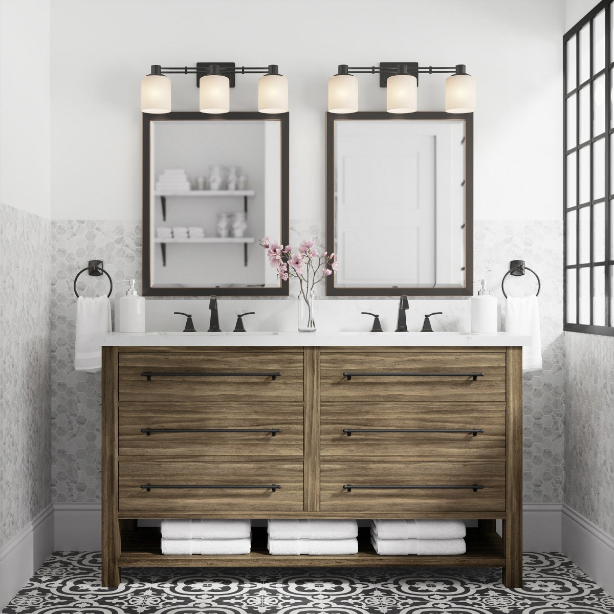 allen + roth Kennilton 60-in Gray Oak Double Sink Bathroom Vanity with Gray Oak Engineered Stone Top