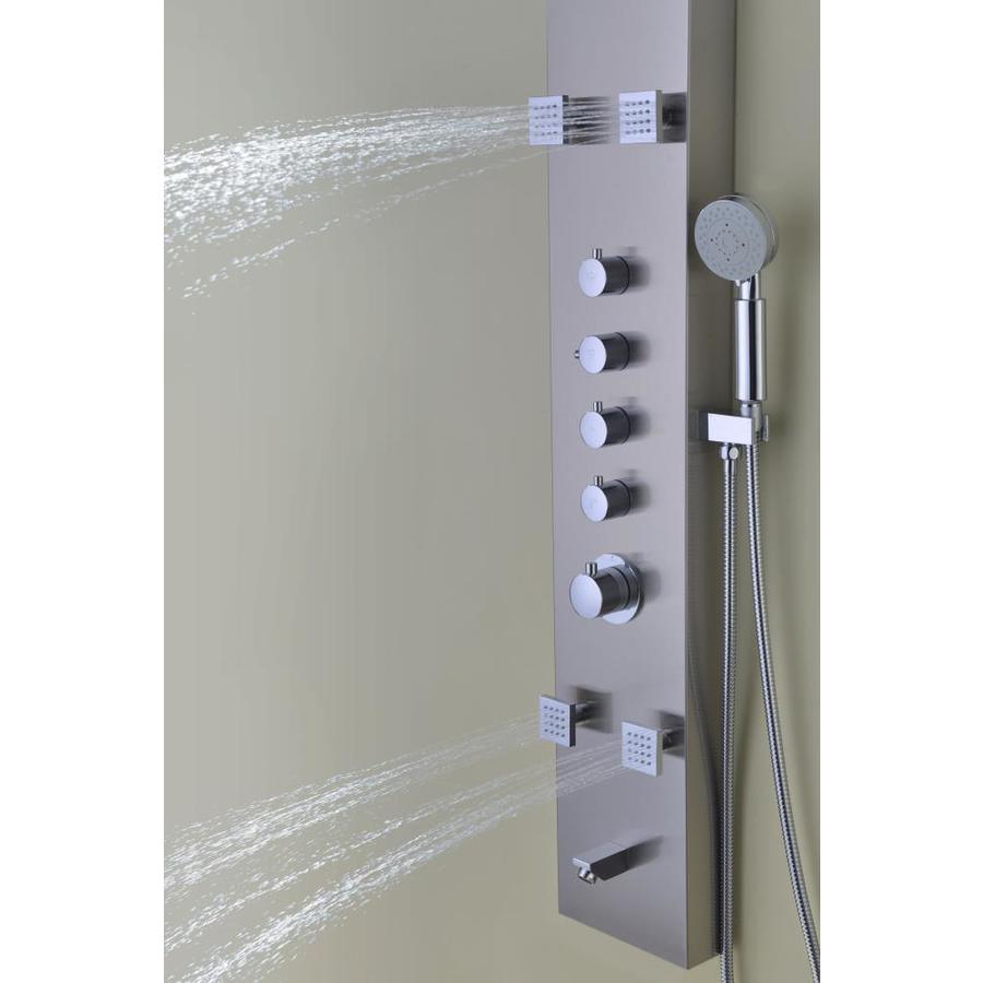 Your order will include one (1) ANZZI Echo full body shower panel, one (1) Heavy Rain swiveling shower head, four (4) fully directional Acu-Stream body massage jets, one (1) euro-grip free range hand sprayer, one (1) owner's manual