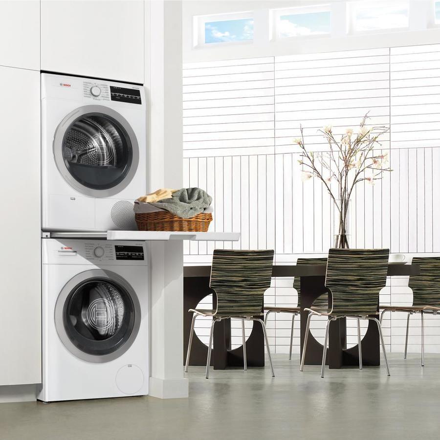 Bosch 500 Series 2.2-cu ft front-load washer features a high-efficiency, stackable and sleek silver design that saves space and energy