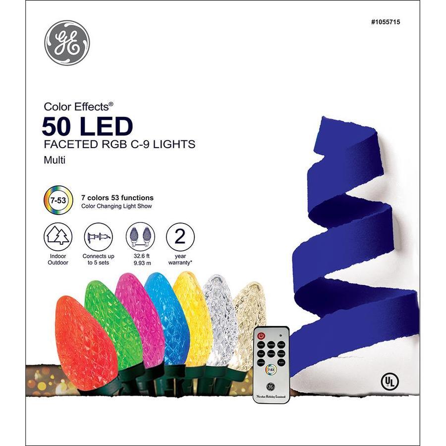 50-Count GE LED Color Effects C9 diamond cut reflector lights