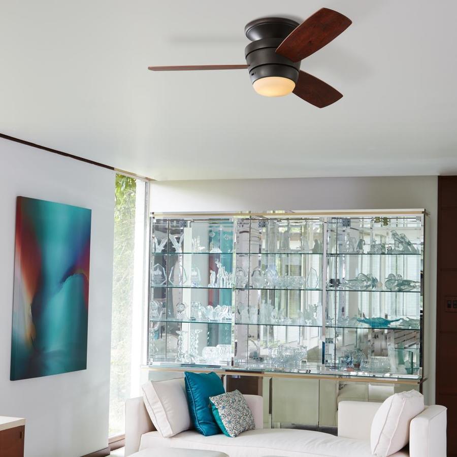 Harbor Breeze Mazon 44-in Oil-rubbed bronze LED Indoor Flush Mount Ceiling Fan with Remote (3-Blade)