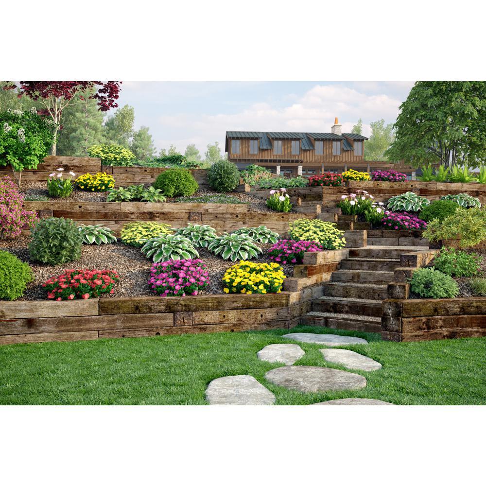 This 8 ft. Treated Wood Railroad Tie can be used to add an attractive, natural-looking touch to your landscape project. It can be used for a variety of applications, such as creating steps and walkways. It is typically 7 in. x 9 in. x 8 ft. in size.