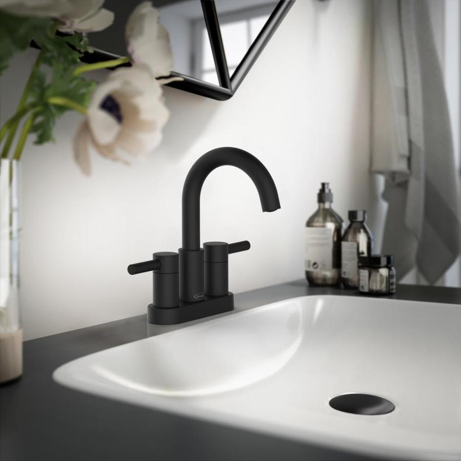 Jacuzzi Duncan Matte Black 2-handle 4-in Centerset WaterSense Bathroom Sink Faucet with Drain