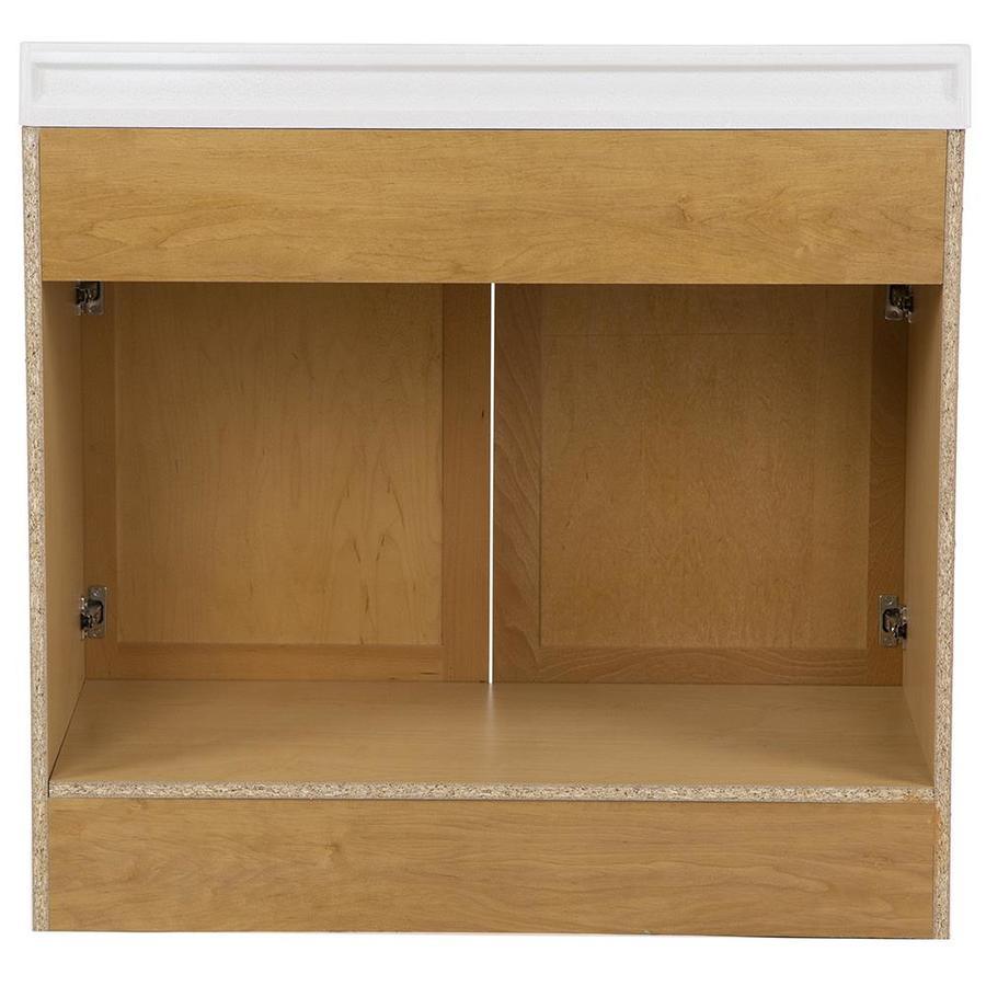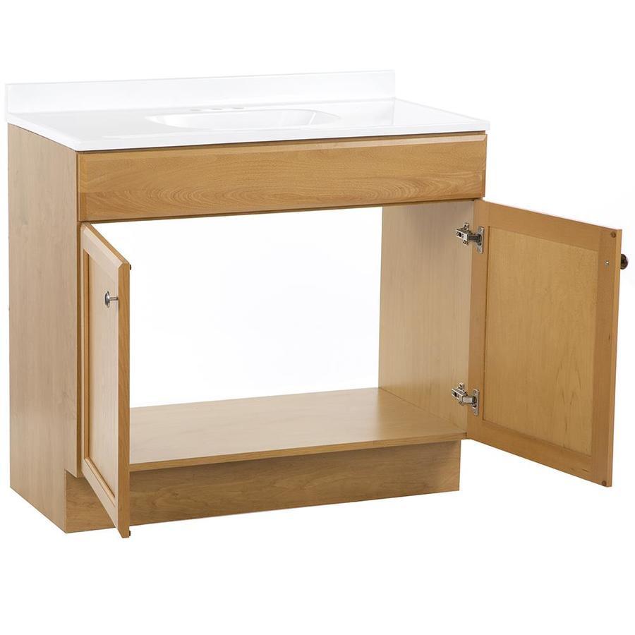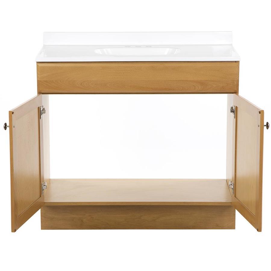 Two recessed panel cabinet doors with 6-way adjustable hinges provide access to interior storage