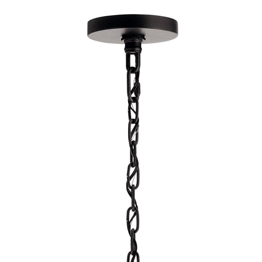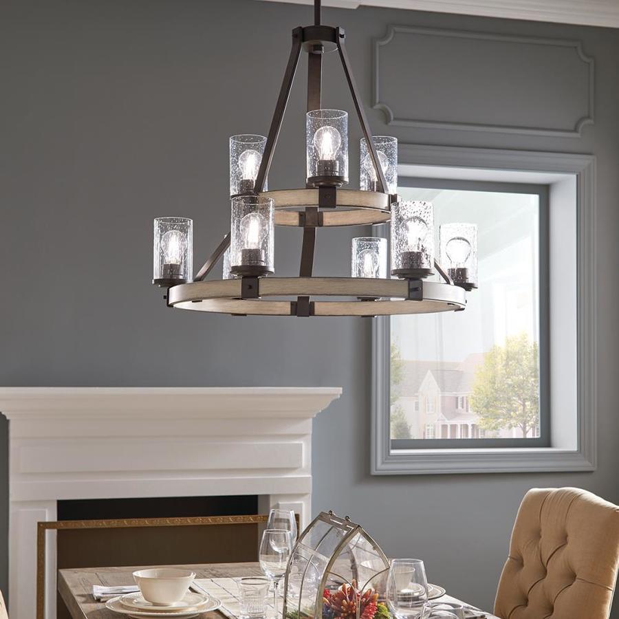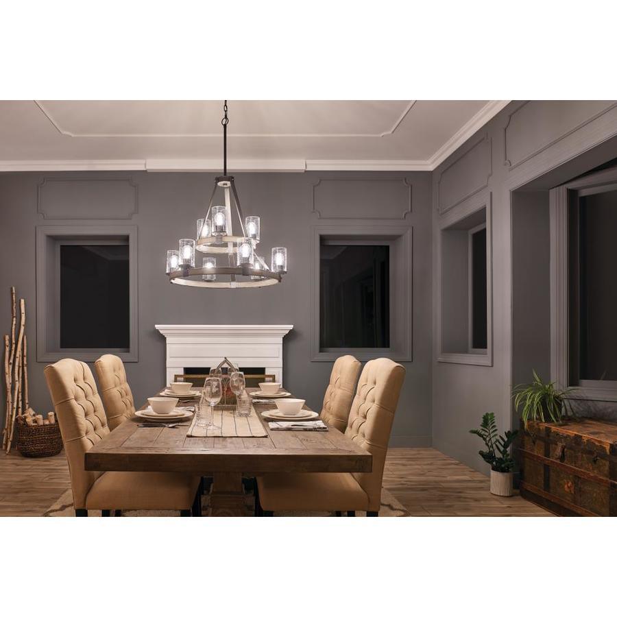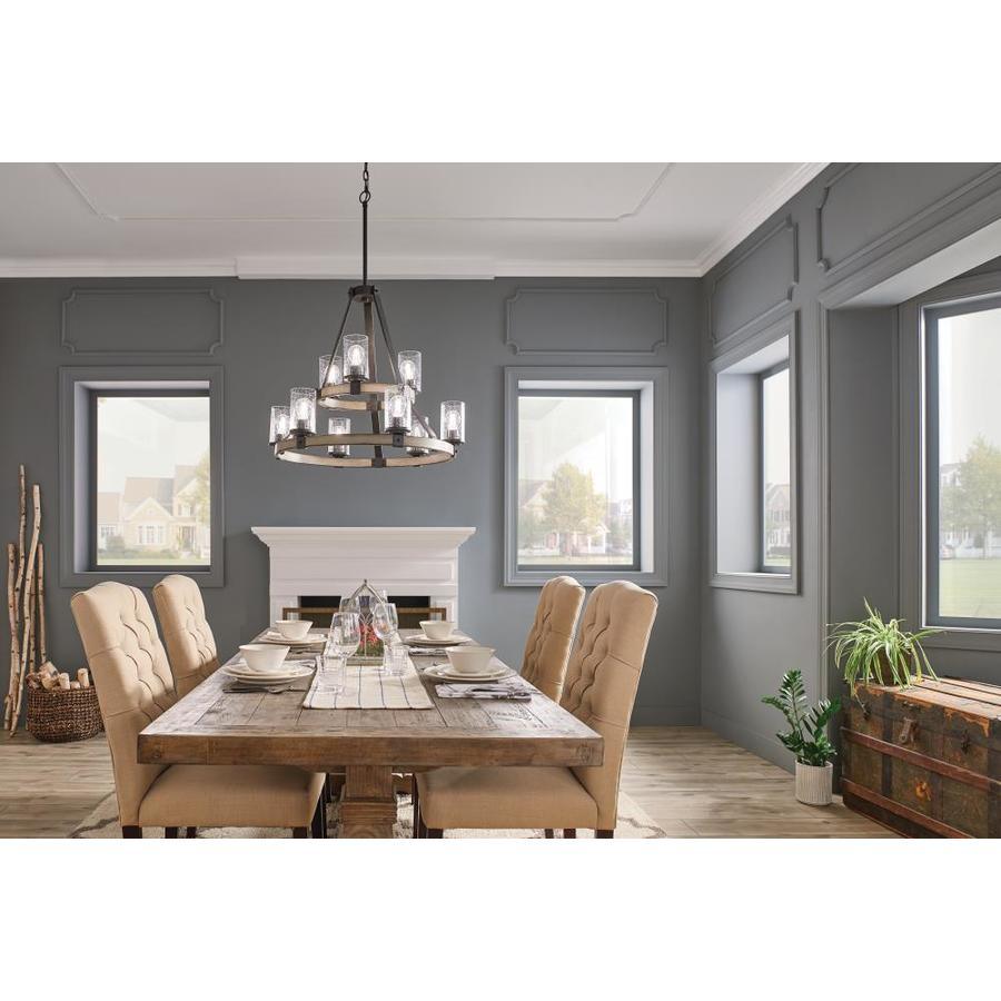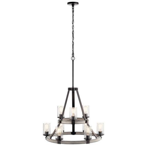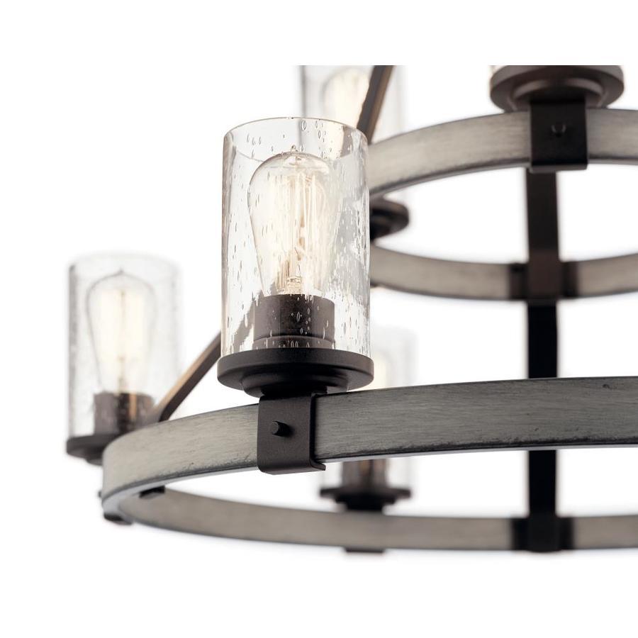This anvil iron and driftwood tone finish chandelier is part of the Barrington collection