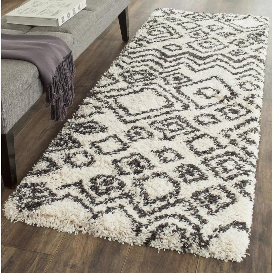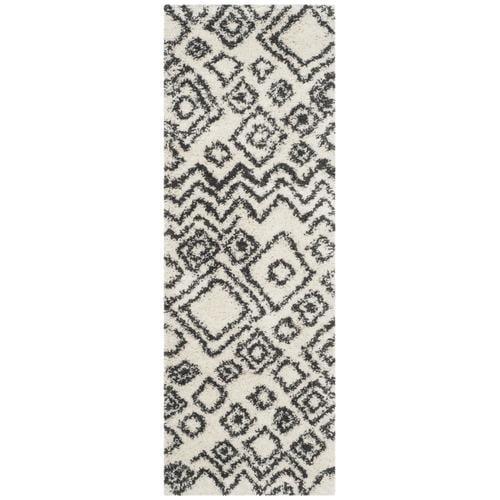 Safavieh Belize Lakin Shag 2 x 11 Ivory/Charcoal Indoor Geometric Moroccan Runner