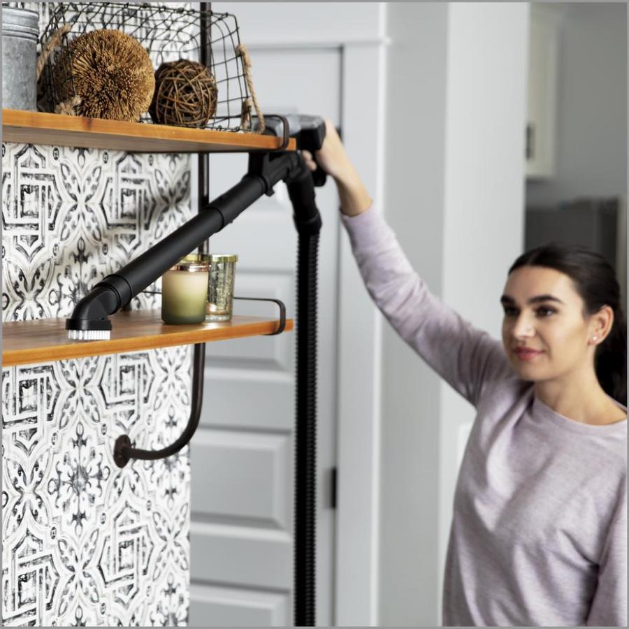 Extend your cleaning reach with the Quick Release Handle and extension tools that store on board