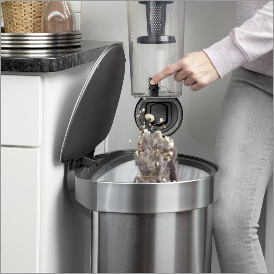 Dirt and debris disposal is easy with a one-touch empty dirt tank