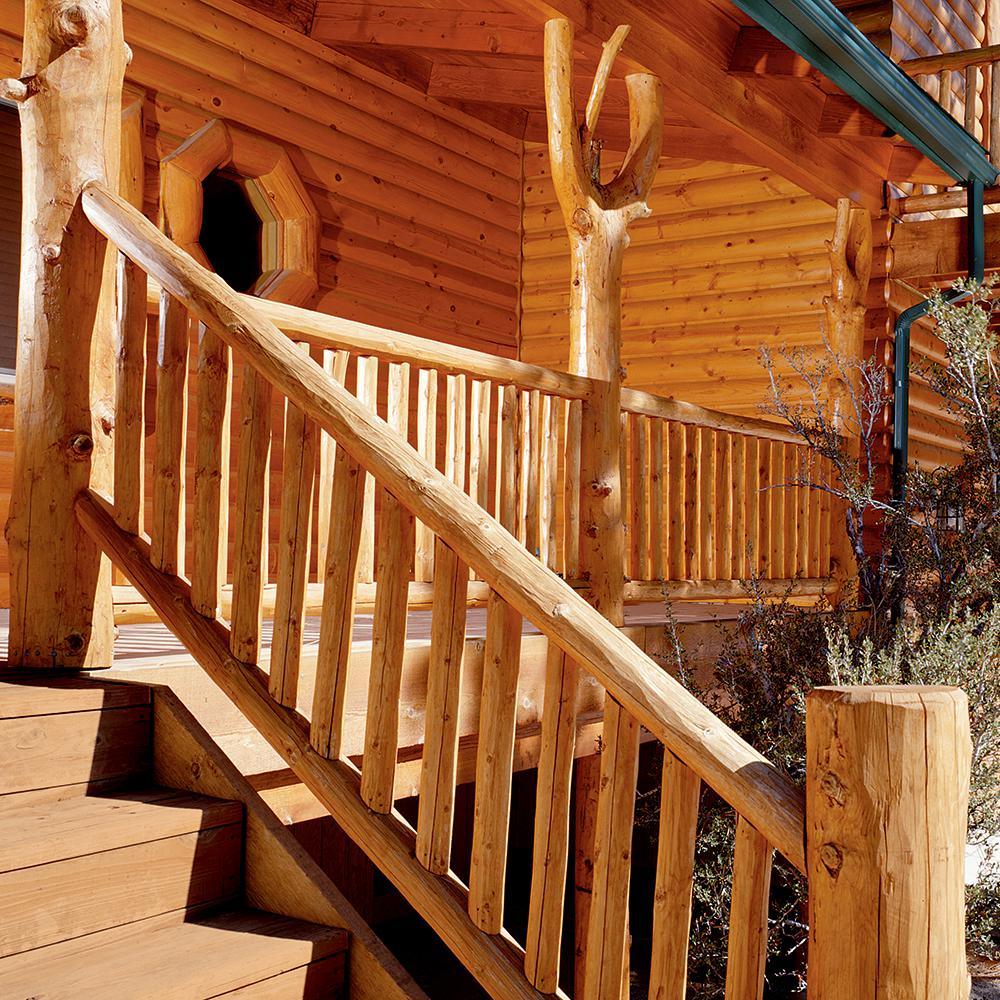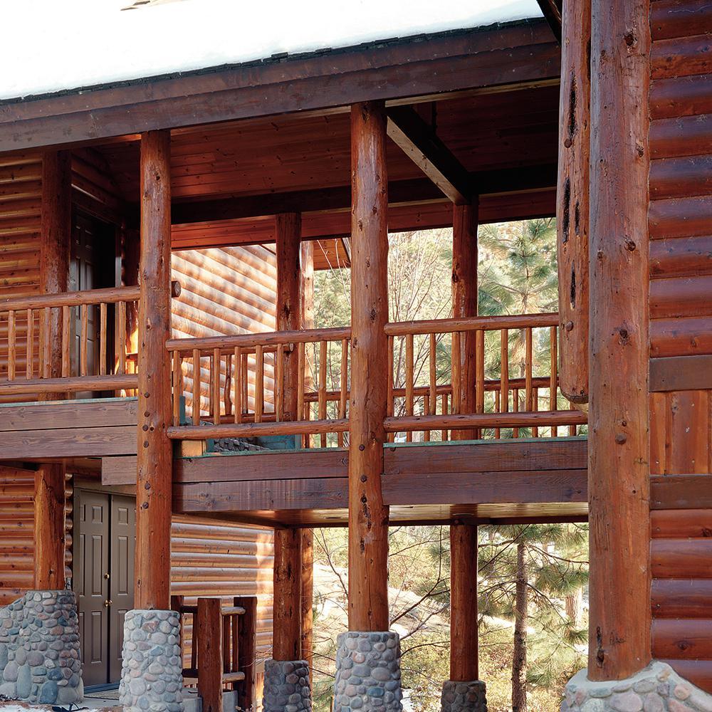 The BEHR 1 gal. Gloss Water Clear Log Home Finish is great for use on log- and timber-frame houses, siding, fencing and more. It features a waterproof water-based formula with mildewcide that also resists damage from UV rays and mildew. The 1 gal. can covers areas up to 400 sq. ft. The stain dries to the touch in 12 hours and should be reapplied after 1 day for best results.
