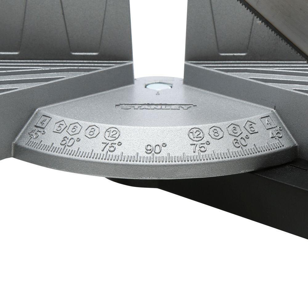 The Stanley Clamping Miter Box with Saw is designed to easily make precision cuts in wood. It features simple angle adjustment for most applications and a slip-resistant grip for comfort and control. The box comes with a saw that has induction-hardened teeth for a longer cutting life.