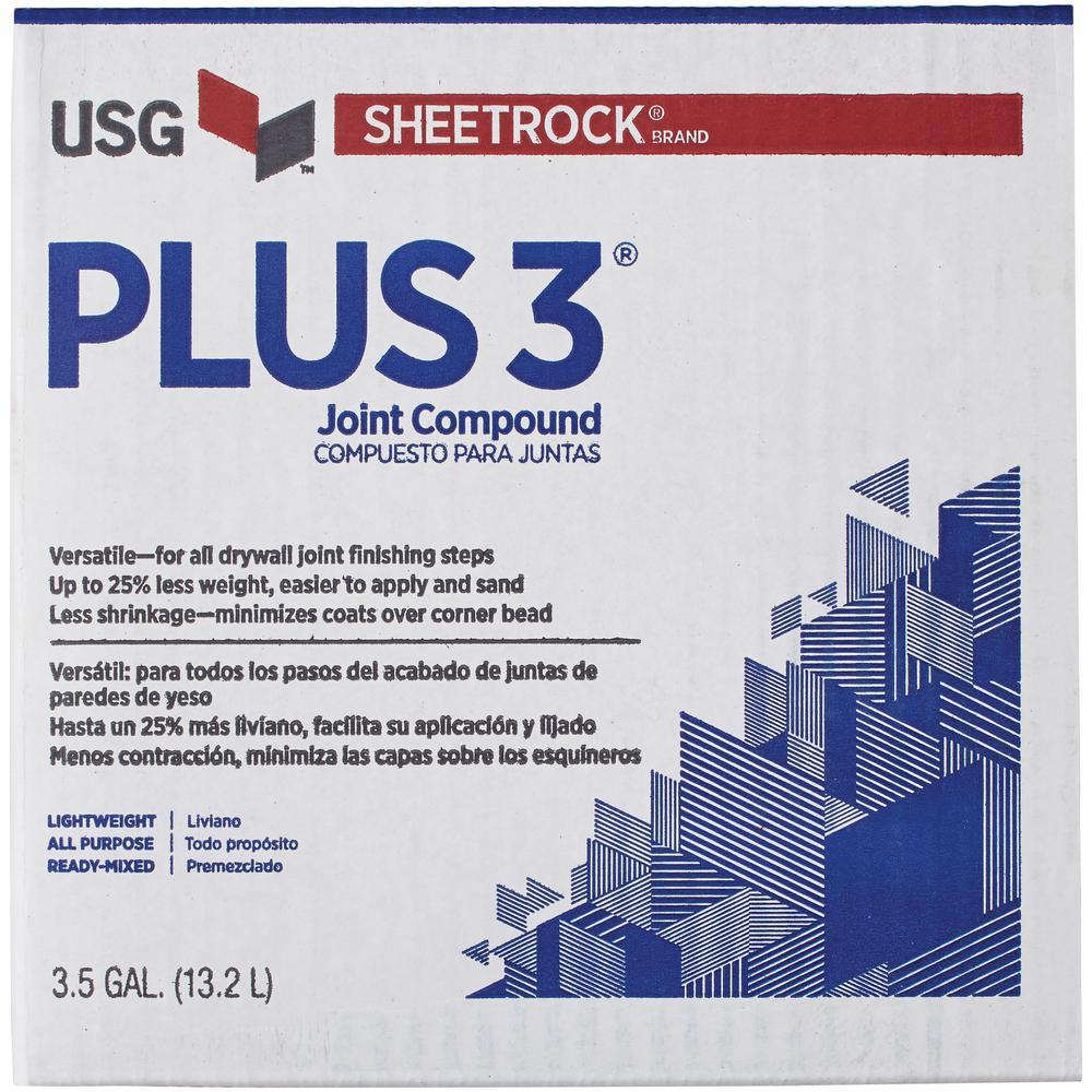 With up to 25% less weight than conventional-weight compounds, SHEETROCK Brand Plus 3 Lightweight All-Purpose 3.5 Gal. Joint Compound features good open time and less shrinkage. It also sands with the ease of a topping compound and bonds like a taping compound. Requiring one fewer coat over fasteners and bead, it eliminates the need for taping and topping compounds.