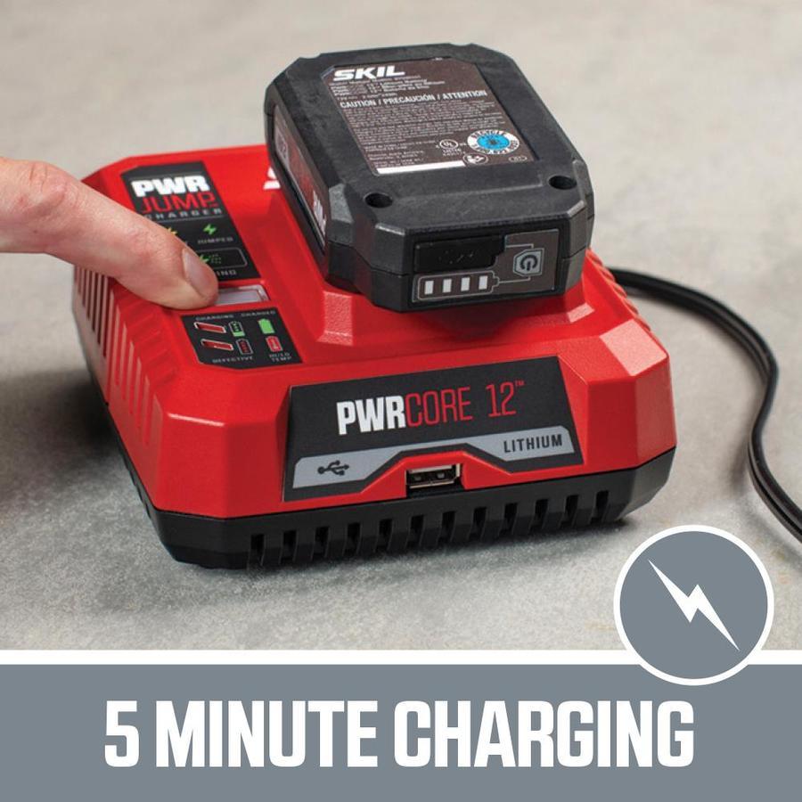Kit includes: PWRCore™ 12V drill/driver, PWRCore™ 12V 2.0Ah lithium-ion battery, and PWRJump™ charger
