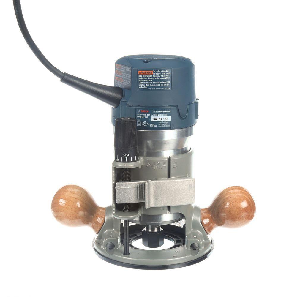 The Bosch 2.25 HP Plunge and Fixed-Base Router Kit is a versatile kit for a broad range of applications, including precise bit plunging, edge forming, slot cutting, laminate trimming and dovetail cutting. You can also use it with a router table. The kit features a 25,000 RPM, 12 Amp motor that delivers the power needed for smooth routing.