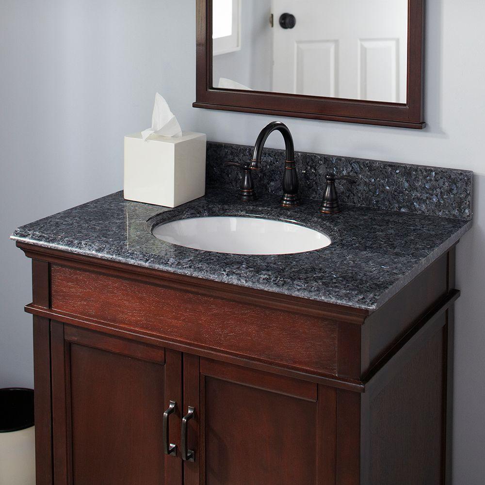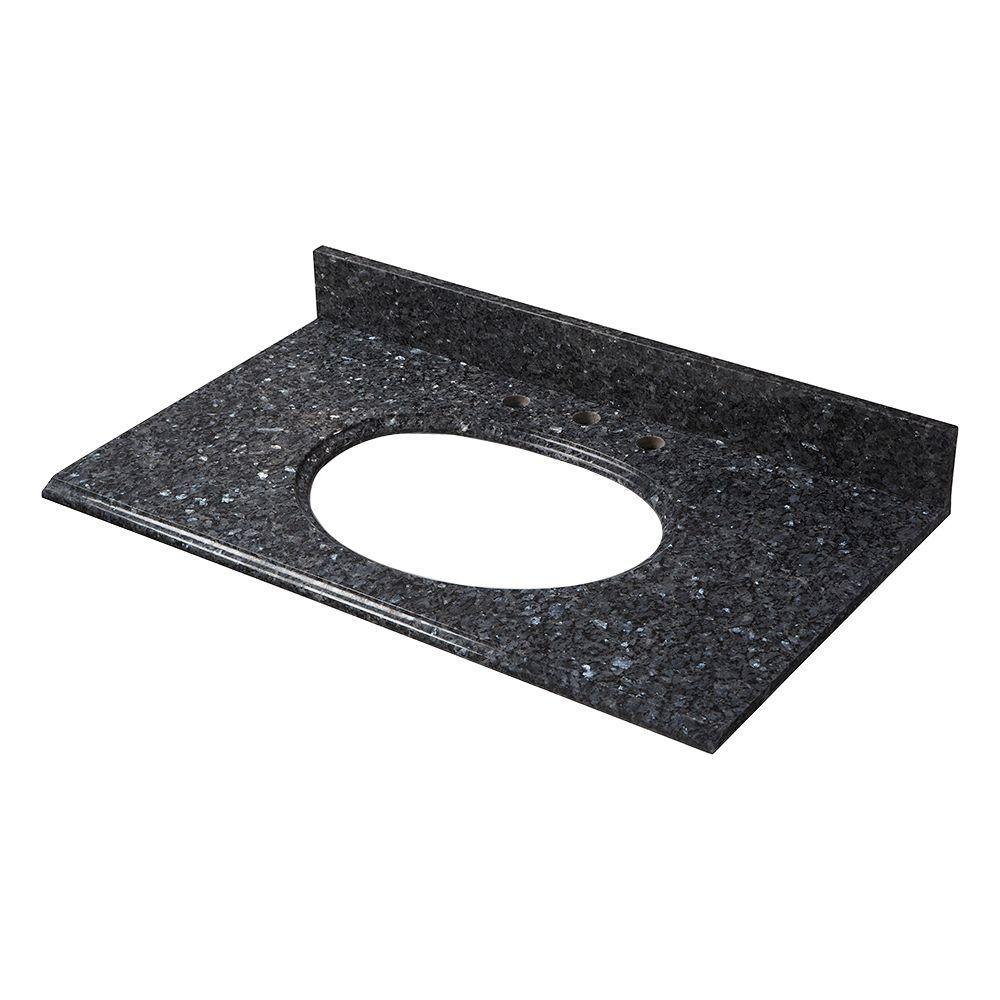 Bring elegance and sophistication into your bathroom with the Pegasus 25 in. Granite Vanity Top in Blue Pearl with White Basin. This lovely vanity top features pre-drilled holes for an 8 in. widespread faucet (sold separately), along with a tall backsplash that offers a finished touch while helping to protect your wall and vanity back from water damage. You can install this vanity top onto your present 24 in. vanity cabinet for a quick and easy remodel.