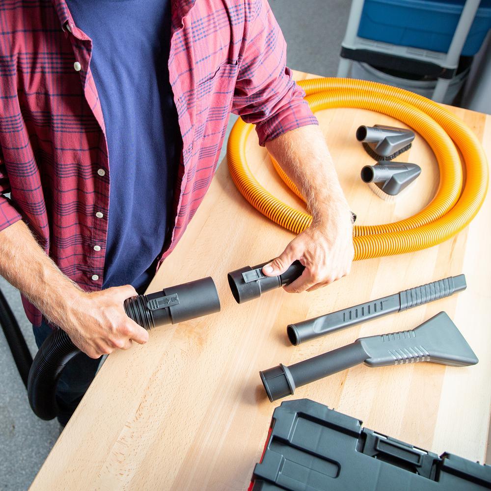 The RIDGID Wet Dry Vac Premium Car Cleaning Kit is an ideal collection of accessories for interior car cleaning. This kit features 7-pieces including a 10 ft. premium hose, soft bristle brush, stiff bristle brush, crevice tool, claw nozzle, hose-to-hose adapter, and a step down adapter (to connect 1-1/4 in. accessories to a 2-1/2 in. hose).