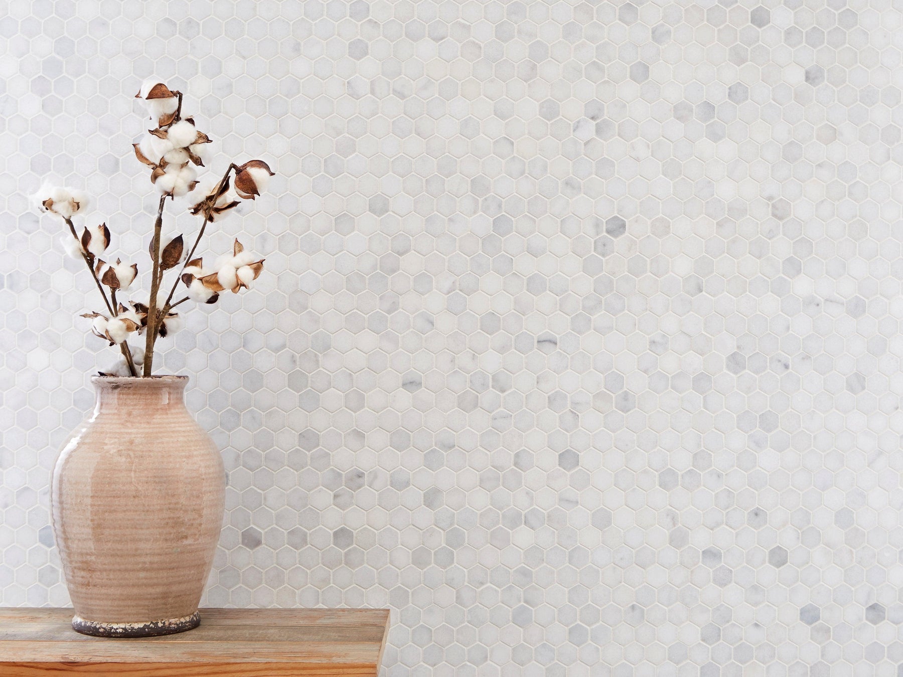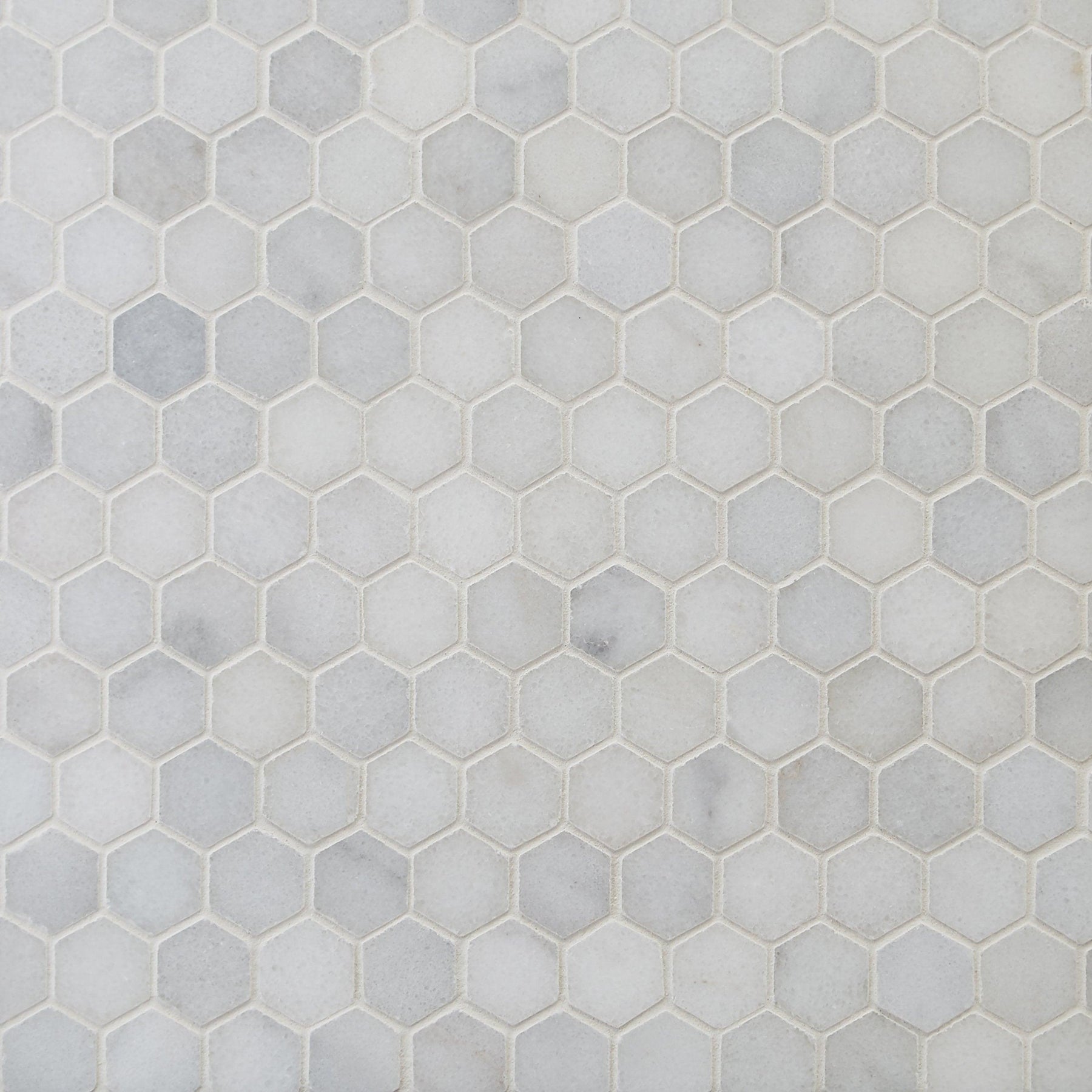 Carrara Chateau 1 in. Hexagon Honed Marble Mosaic