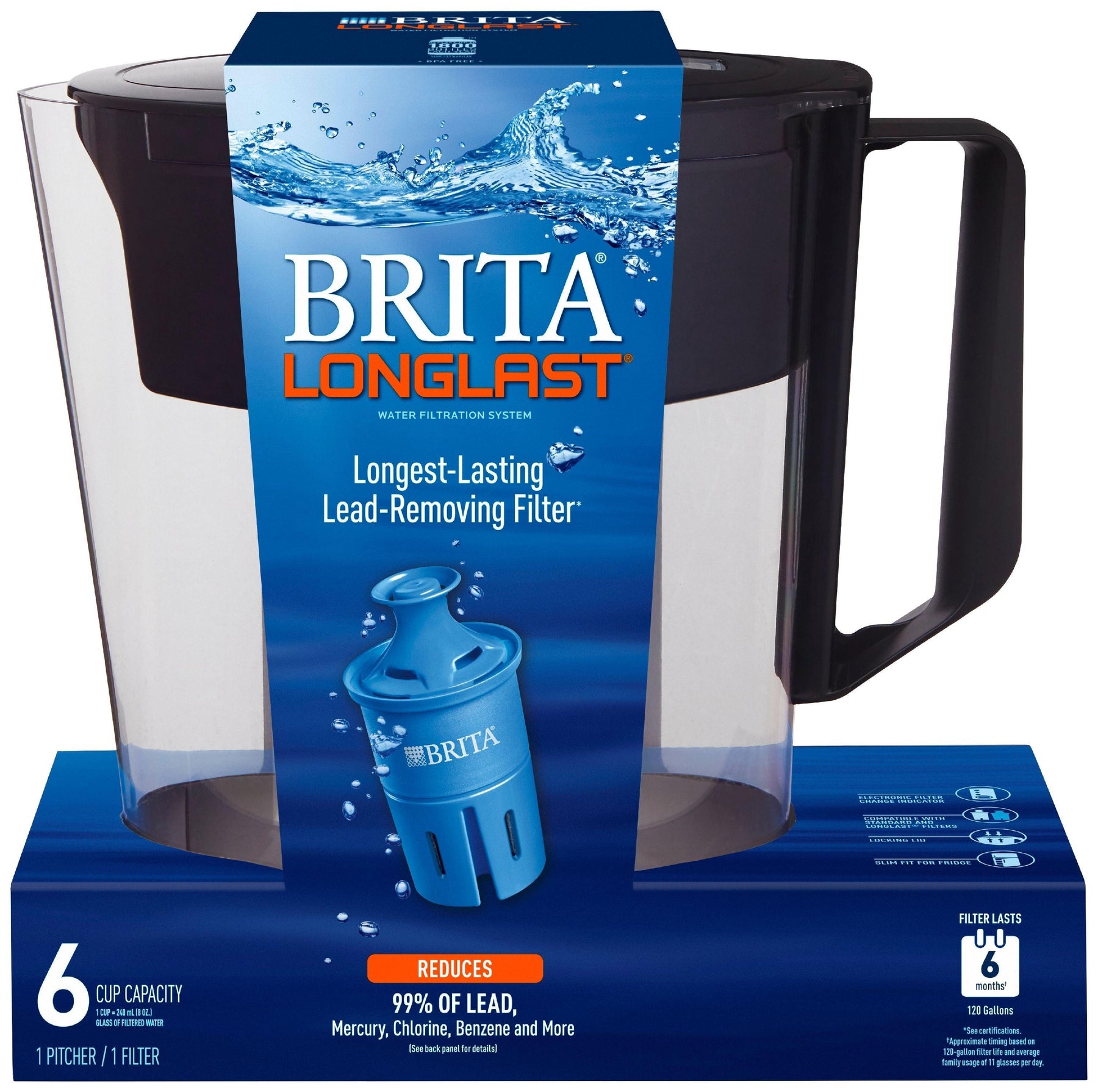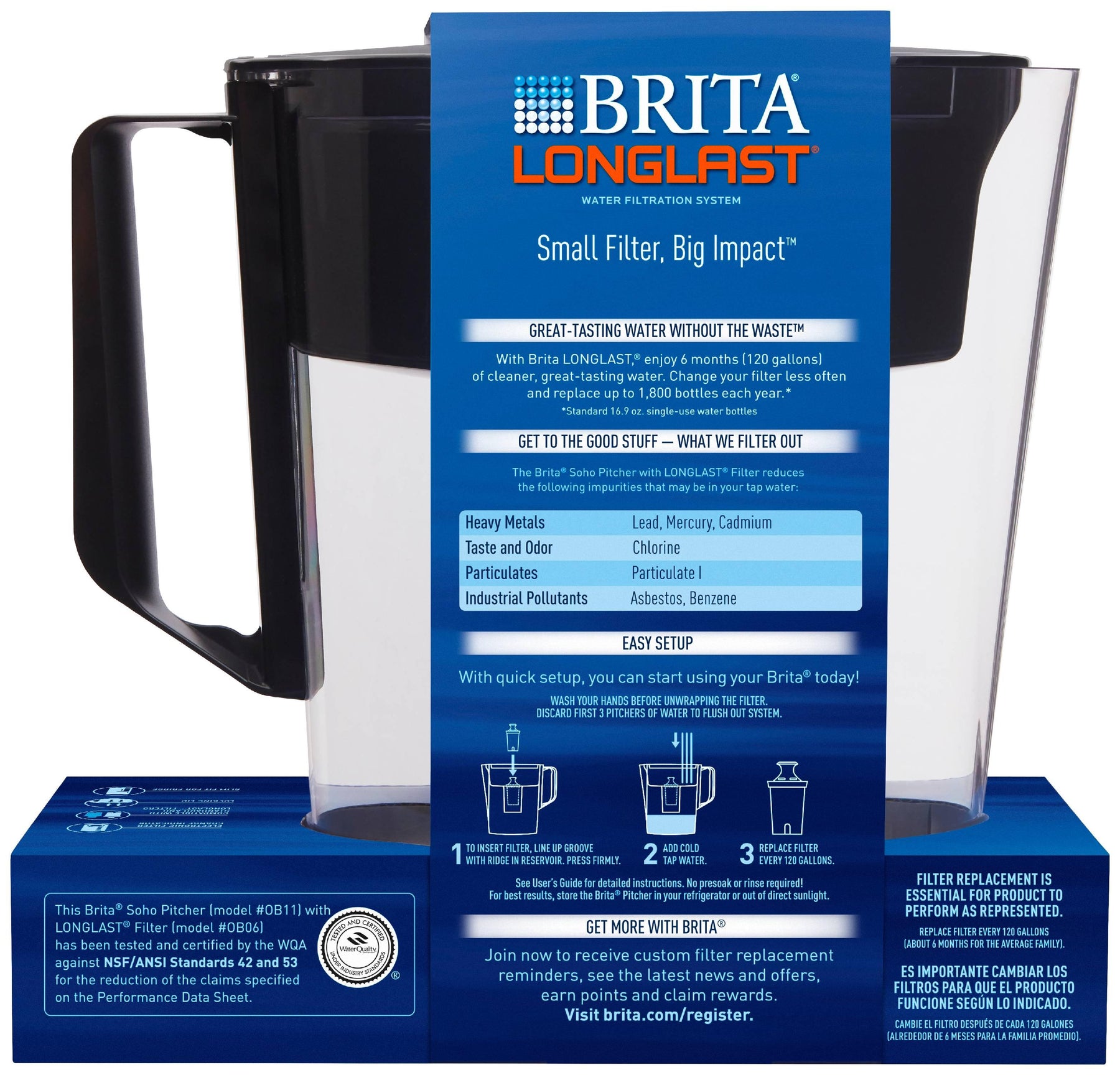 Brita Soho Water Filter Pitcher with Longlast Filter, 6 Cup - Black