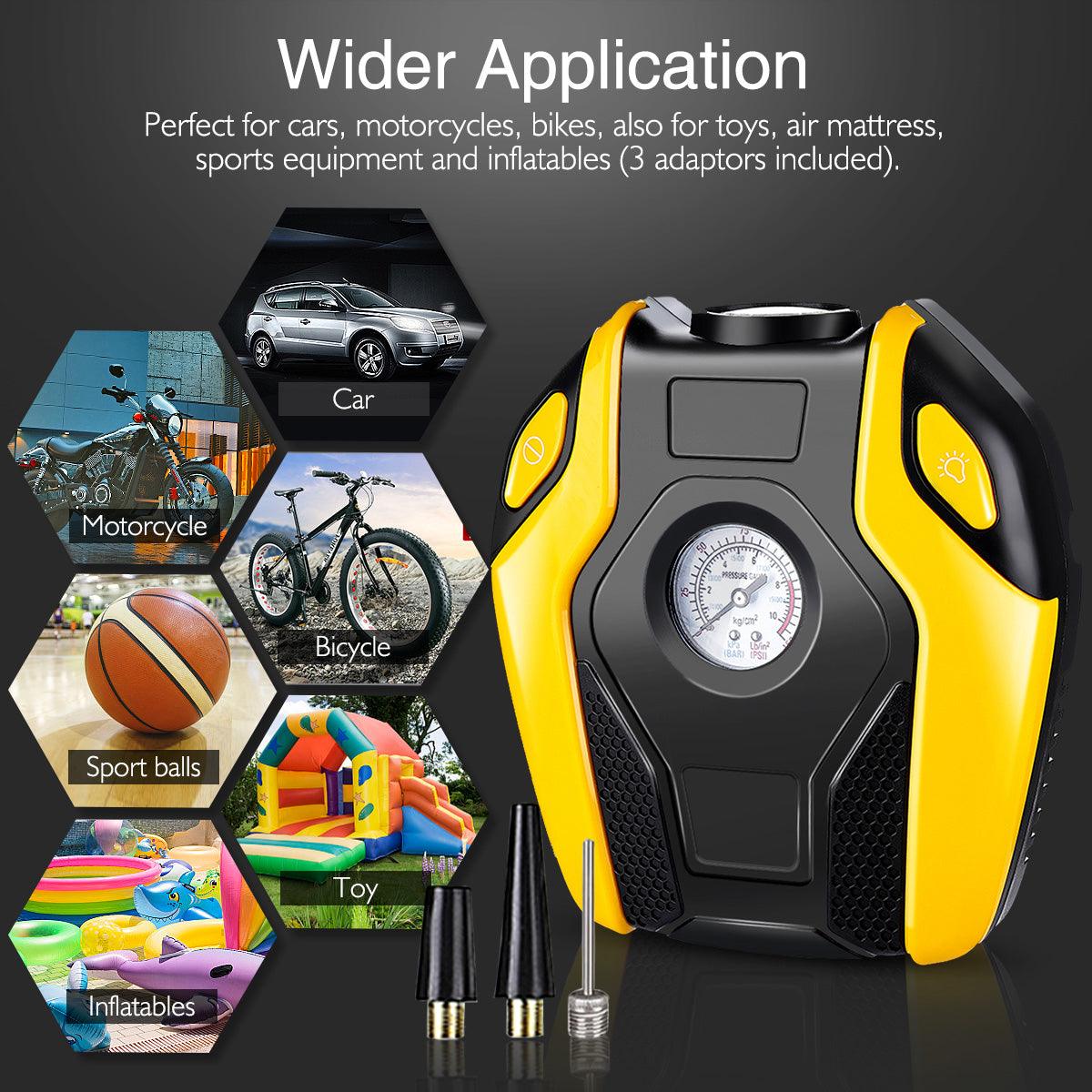 AUGIENB Portable Electric Air Compressor Pump,Tire Inflator with Gauge,LED Light and Adaptors,Universal for Car,Truck,Bicycle, Basketballs and Other Inflatables,ABS 12V 120W 150PS