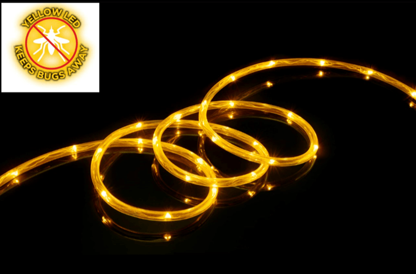 Meilo 16 FT LED Mini Rope Light Low Profile 1/4 diameter Yellow, Plug-in, Connectable, Mosquitoes Repellent for RV, Camping, Indoor/Outdoor Use, Waterproof, 360° Directional Shine, Christmas
