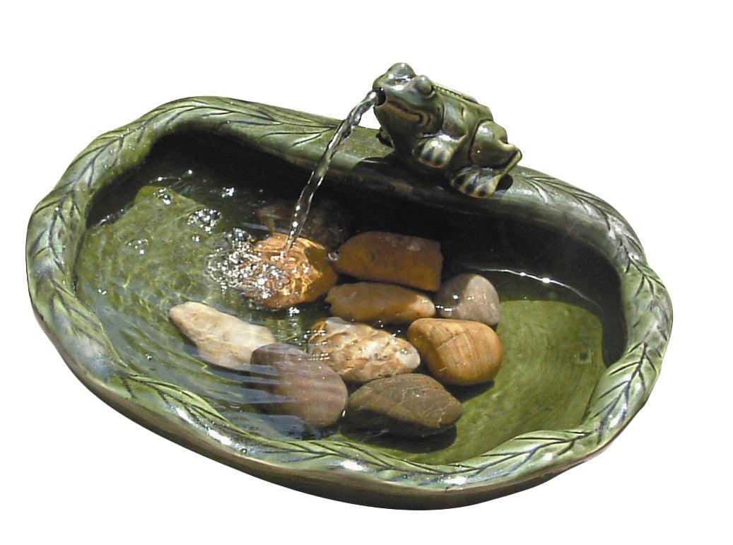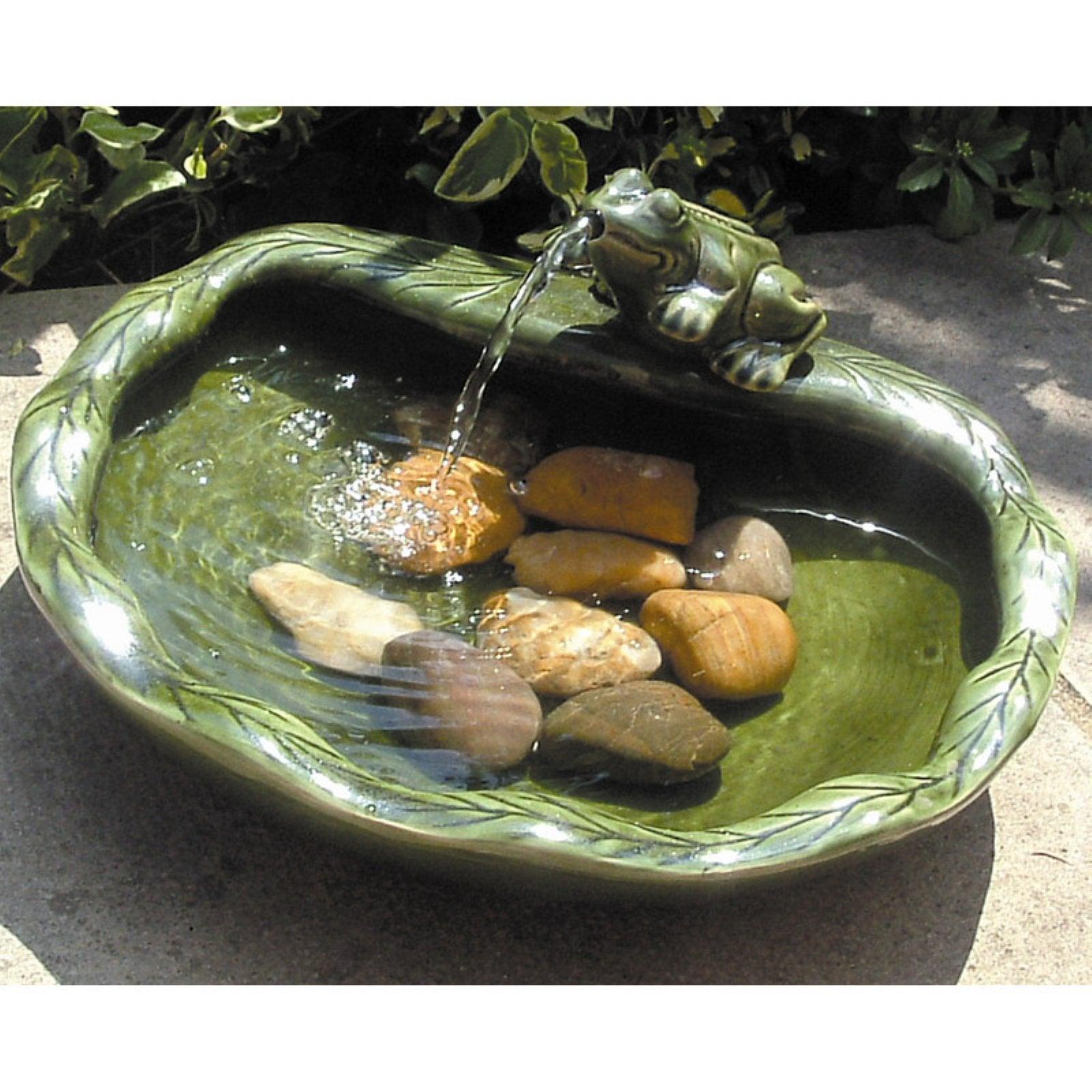 Smart Solar Green Glazed Ceramic Frog Solar Bird Bath Fountain
