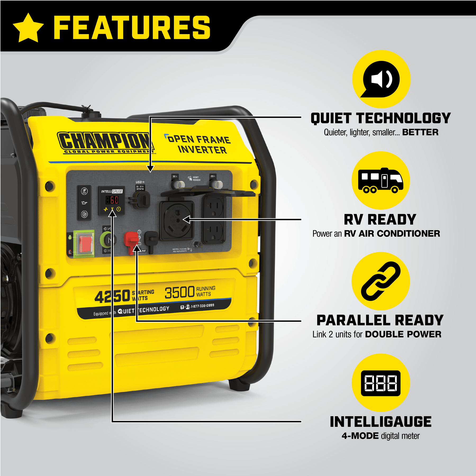 Champion Power Equipment 4250-Watt RV Ready Open Frame Inverter Generator with Quiet Technology