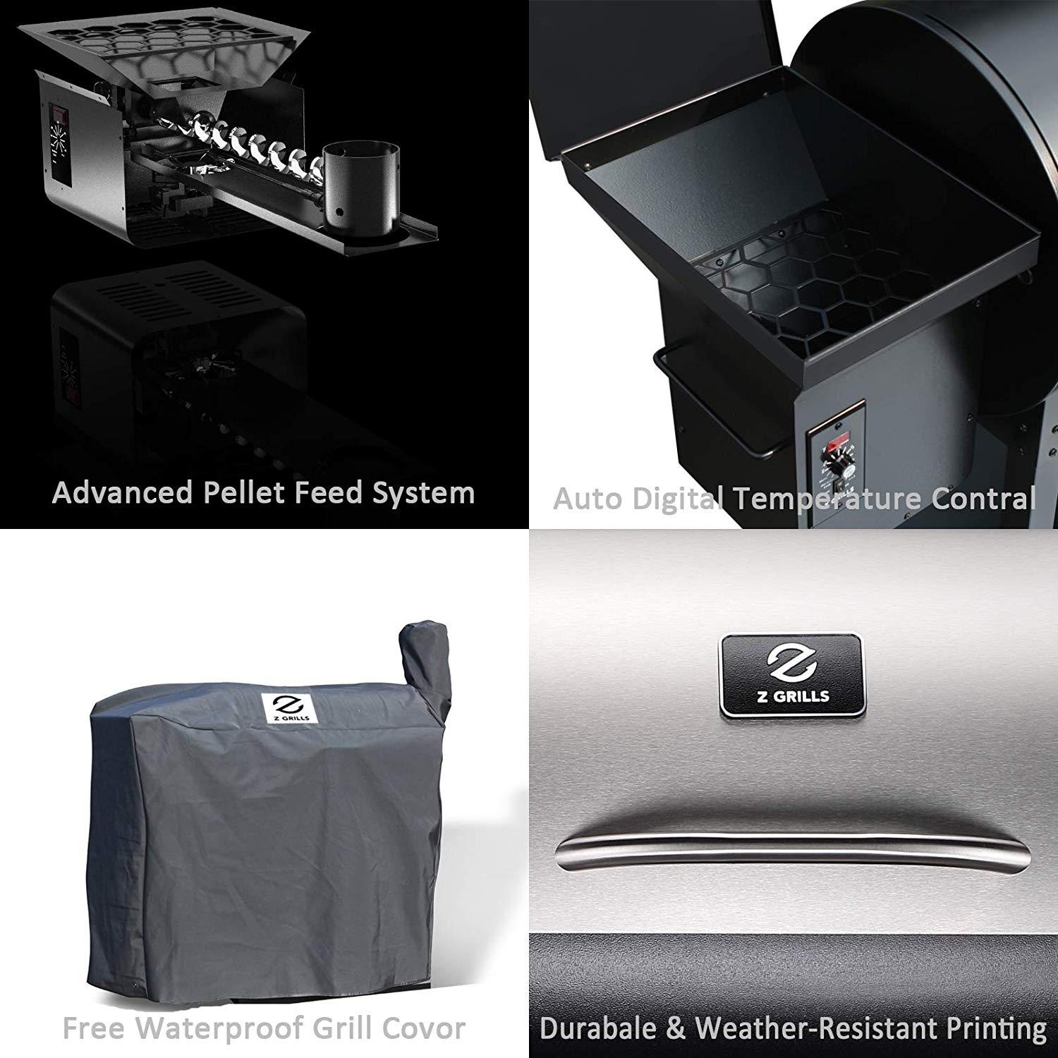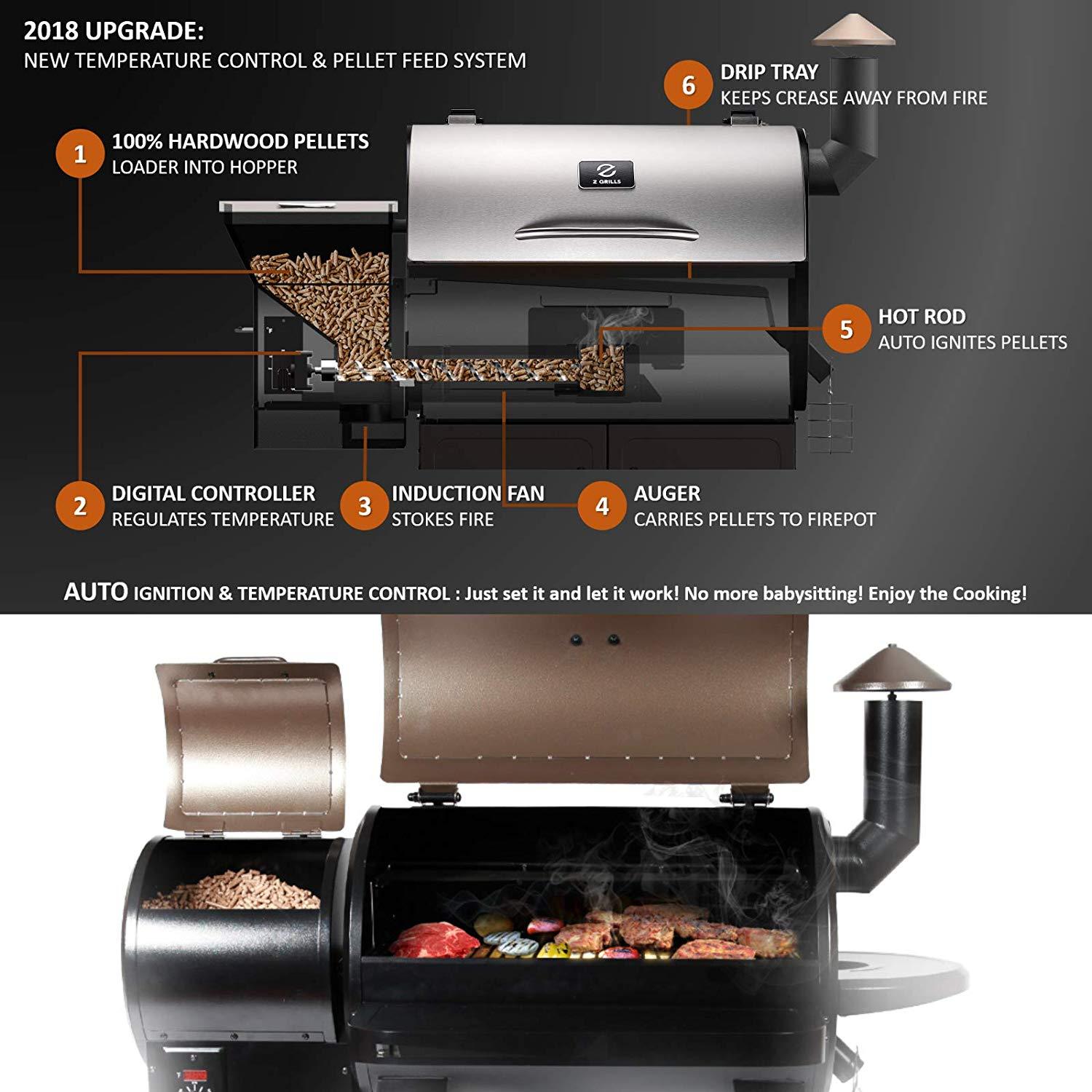 Z GRILLS ZPG-7002E 2019 New Model Wood Pellet Smoker, 8 in 1 BBQ Grill Auto Temperature Control, 700 sq inch Cooking Area, Silver Cover Included
