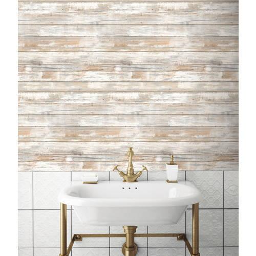 RoomMates Distressed Wood Peel and Stick Wall Decor Wallpaper