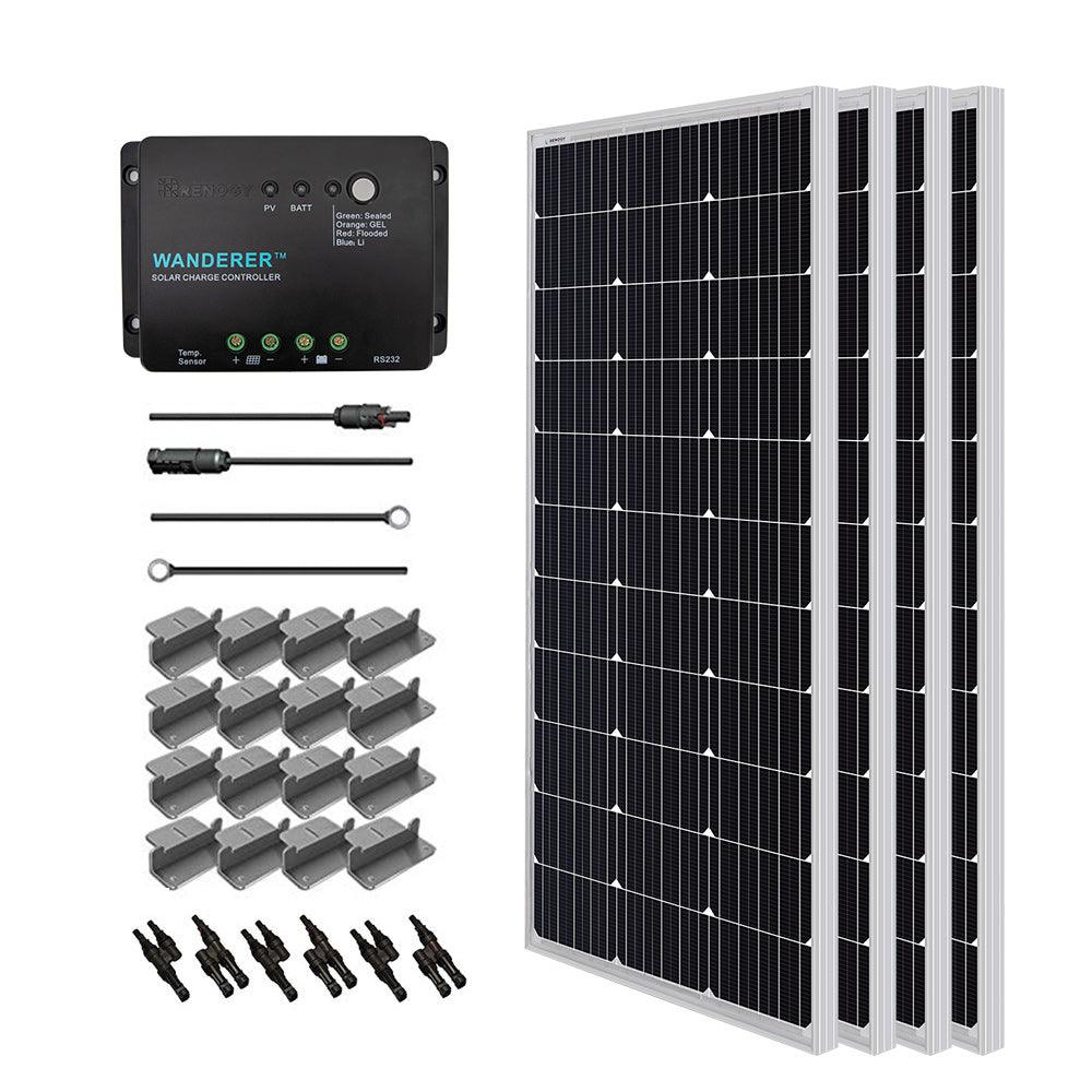 Renogy 400W 12V Solar Panel Monocrystalline Off Grid Starter Kit with 30A Wanderer Charger Controller