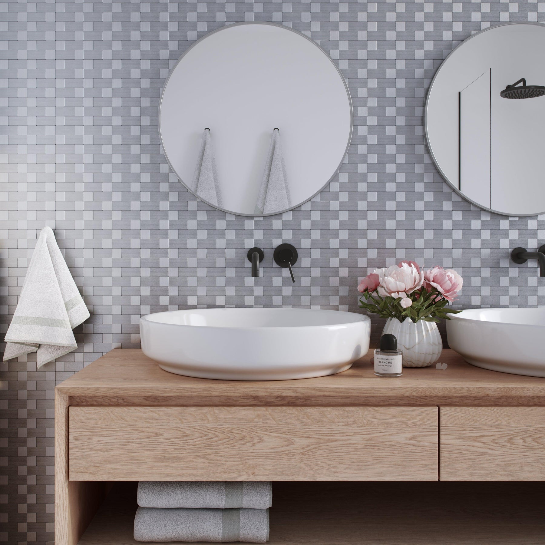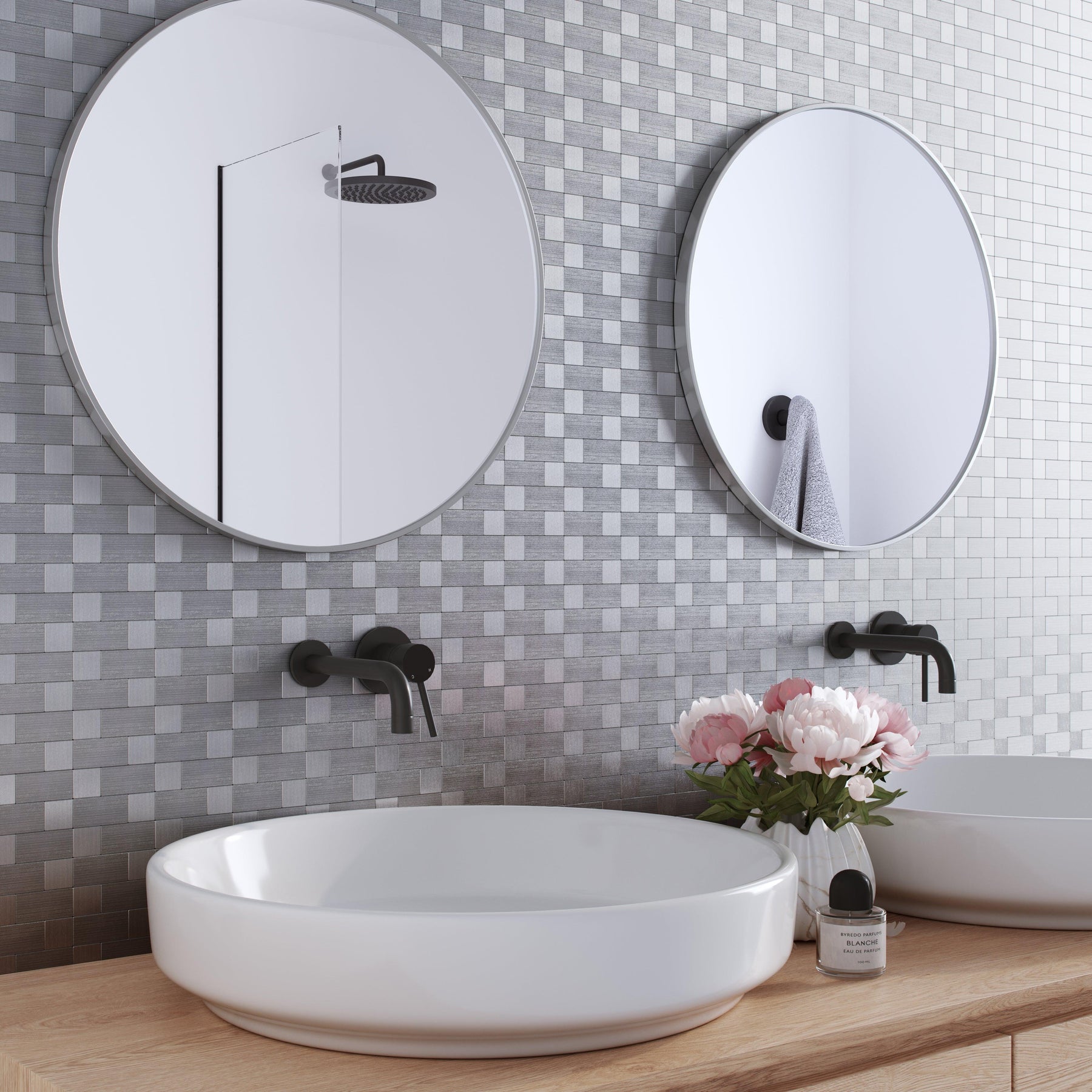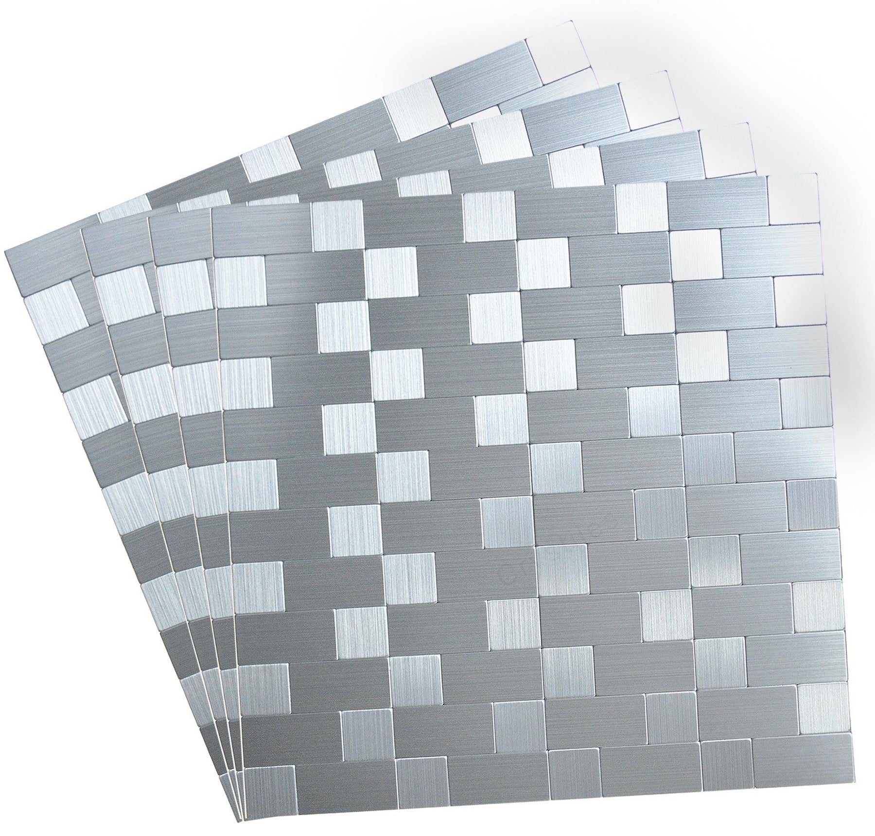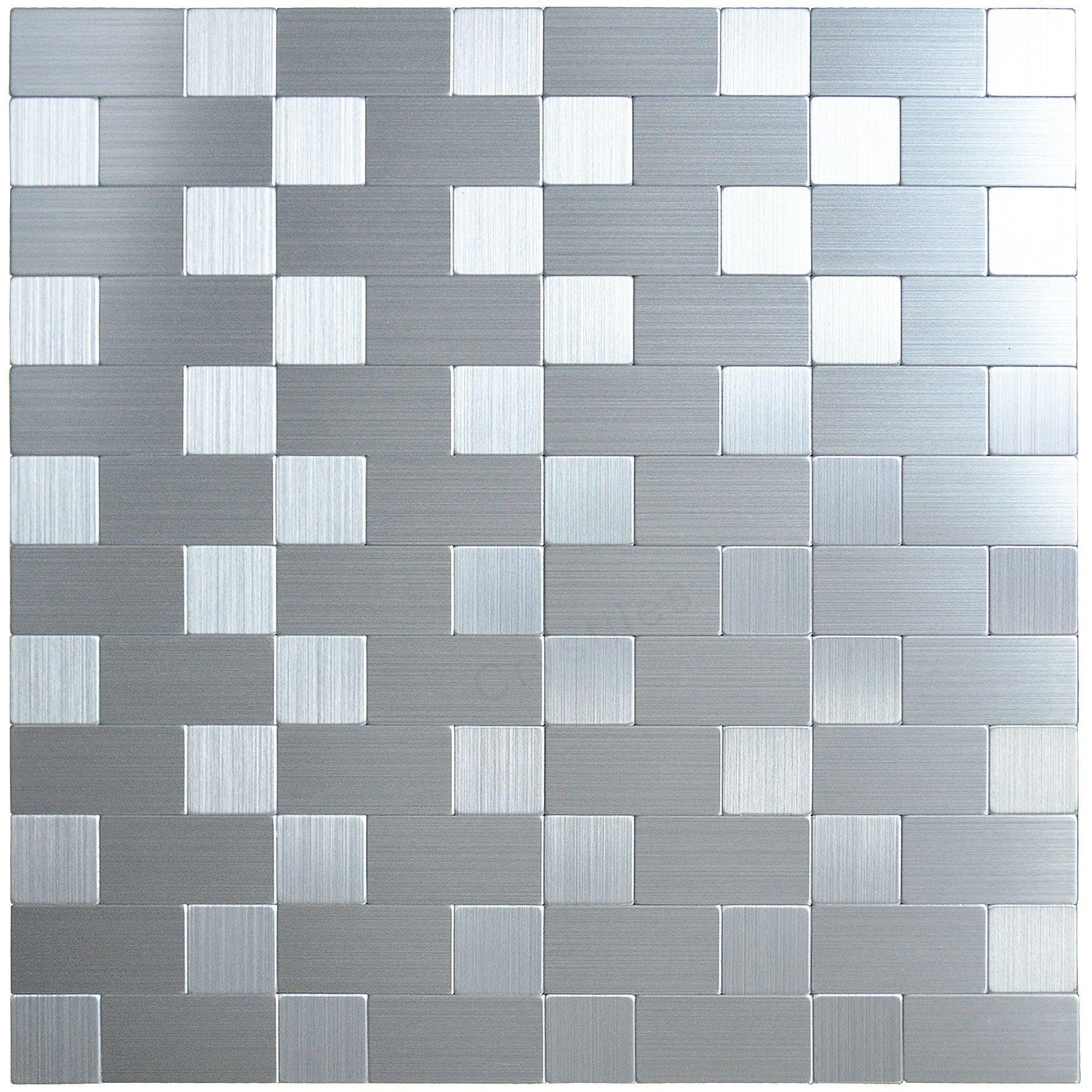 Crystiles Silver Mosaics 12 in. x 12 in. Peel and Stick Brushed Aluminum Wall Tile Backsplash, 4 Pieces